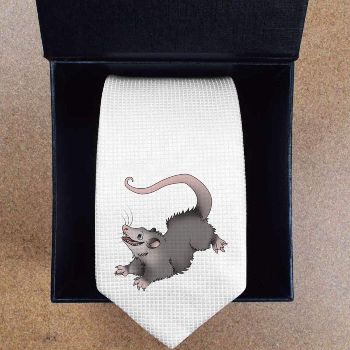 'Possum' White Tie / Necktie with Gift Box (AT00007763)