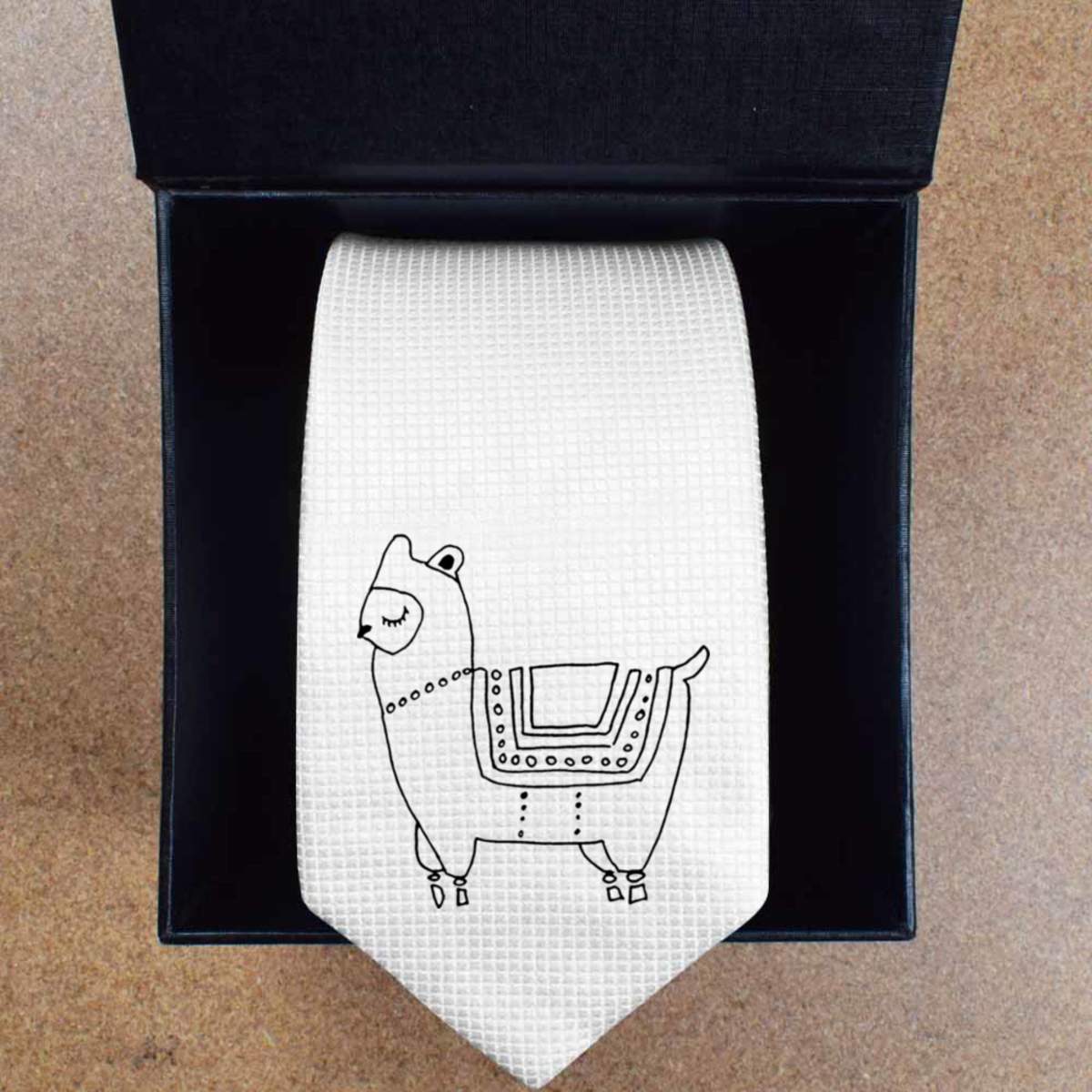 'Proud Alpaca' White Tie / Necktie with Gift Box (AT00003600)