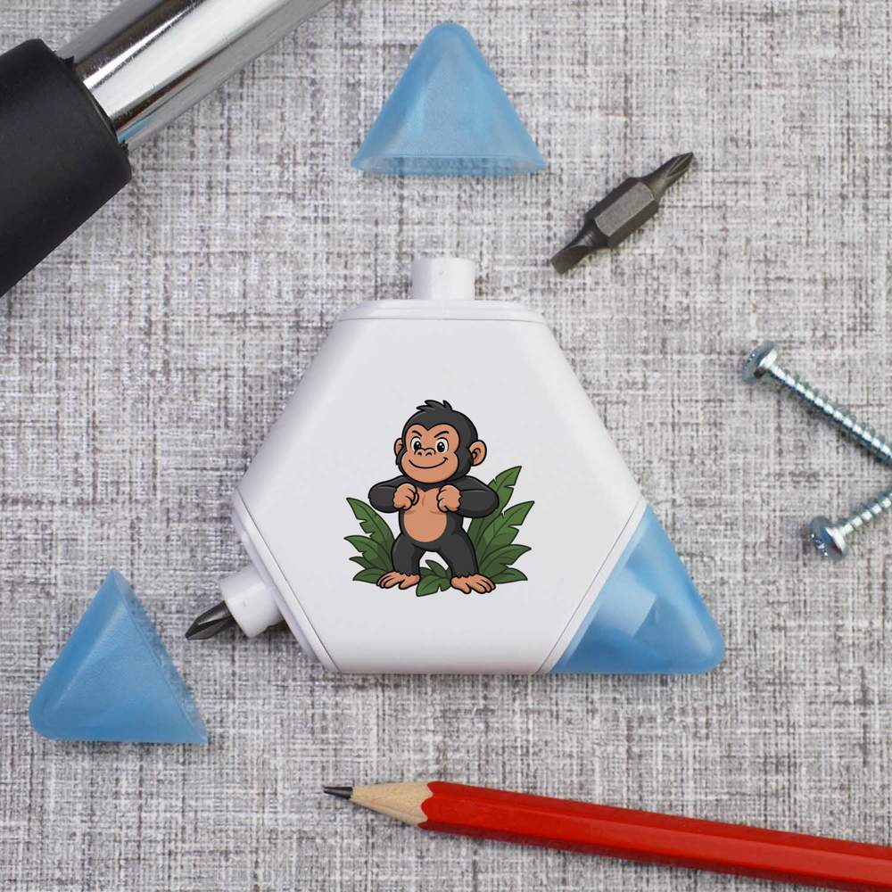 Our triangular compact multi tool is printed on one side with a unique design, making it a great gift for DIY lovers. This 3-in-1 tool set contains a tape measure and 2 different screwdriver attachments and each corner has a snap shut lid. One corner reveals a 1 meter tape measure, while the others hide two reversible screwdriver attachments, one larger and one smaller, both of which have a cross head on one end and a flat head on the other.