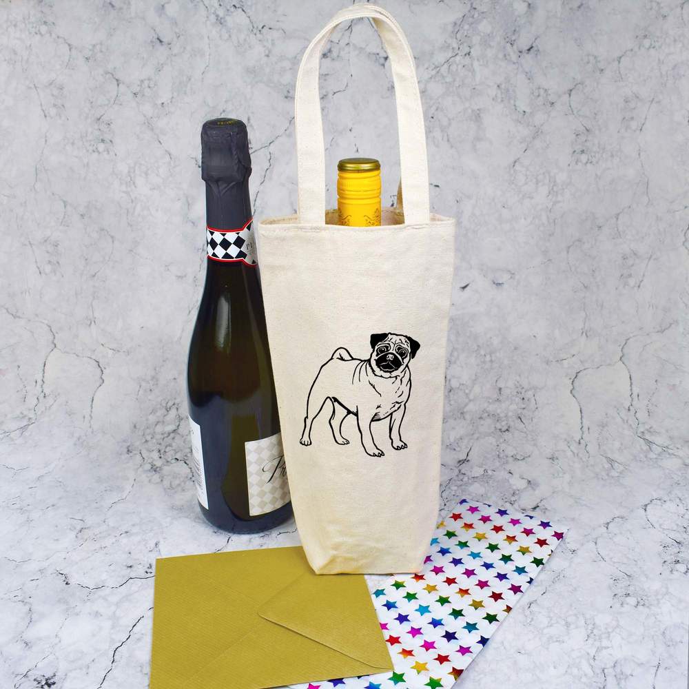 'Pug Dog' Cotton Wine Bottle Gift / Travel Bag (BL00006097)