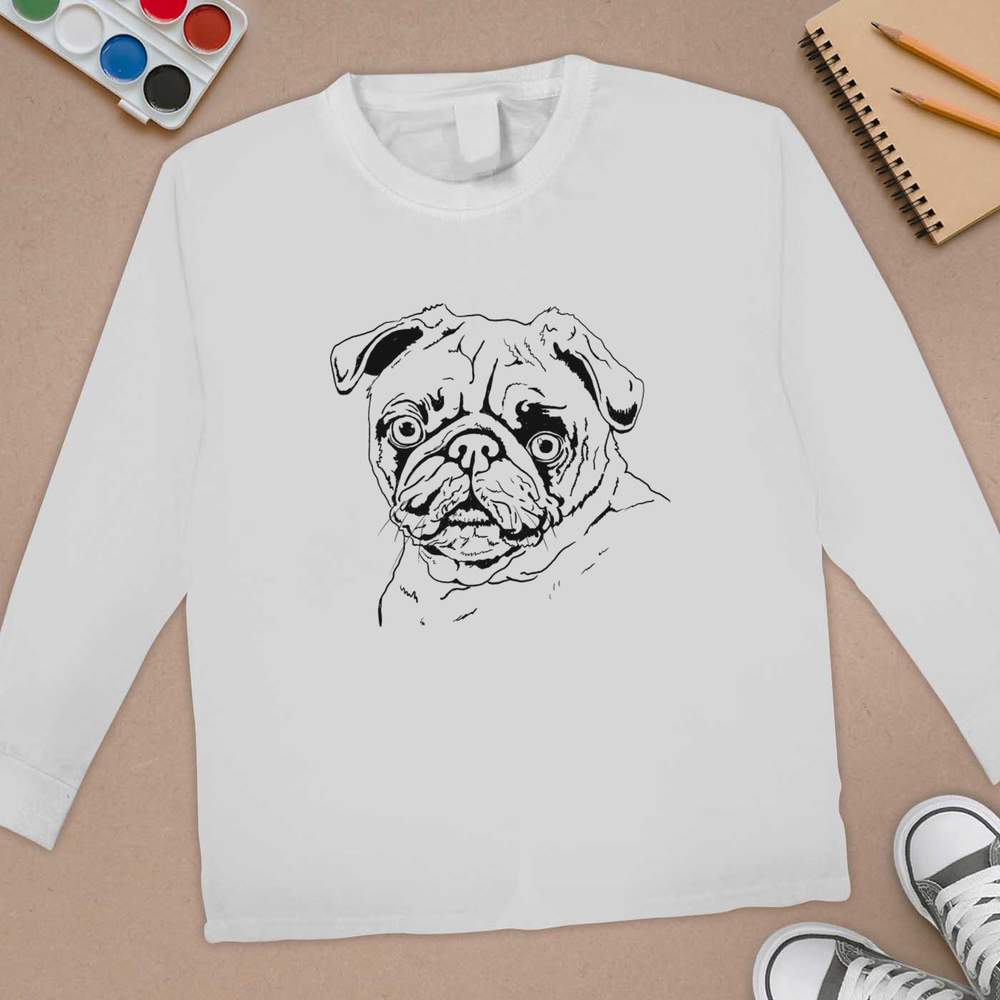 'Line drawing portrait of a Pug dog.'