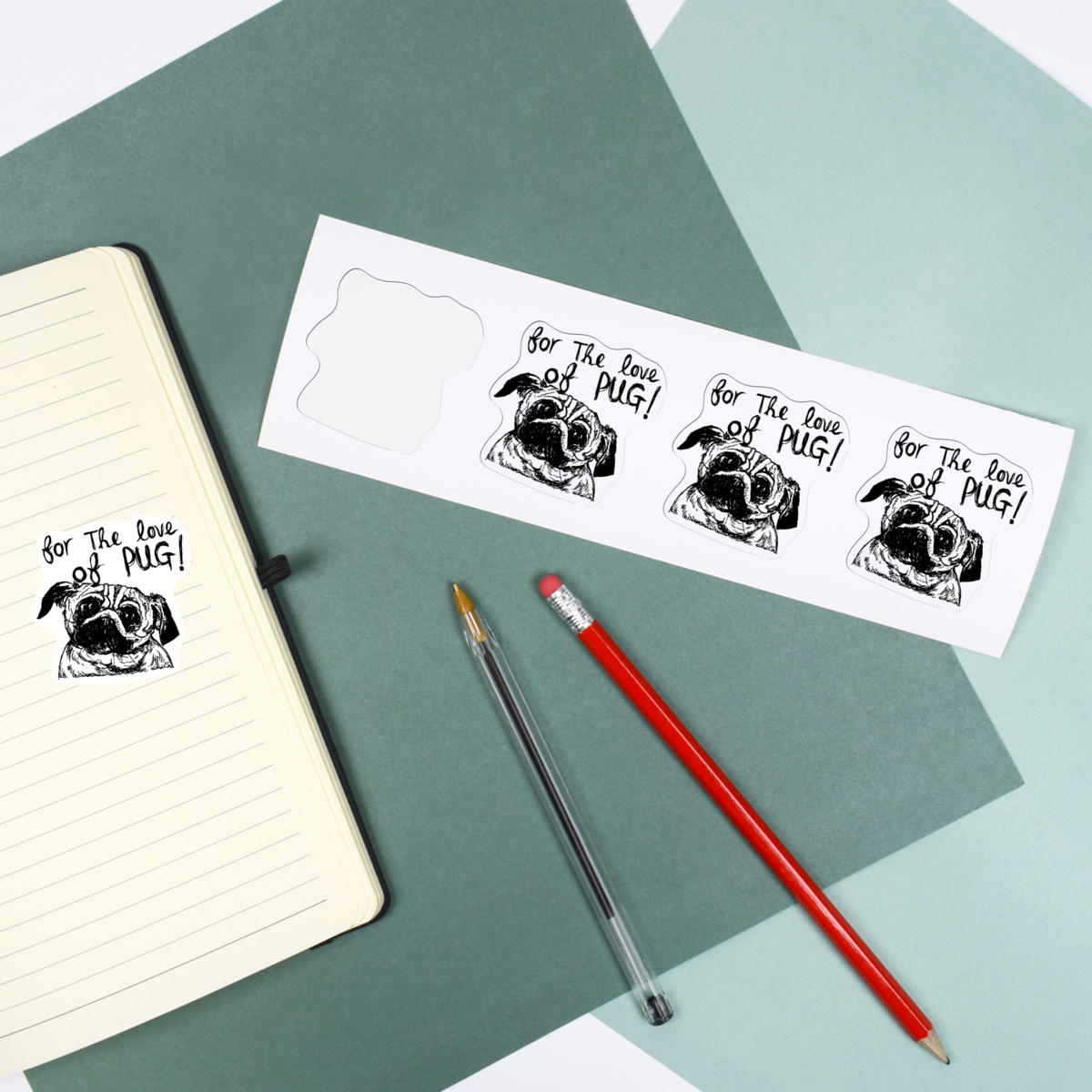 'Pug Love' Premium Vinyl Decal Stickers – Waterproof, Durable & Easy to Apply - Ideal for Cars, Windows, Bins and More (DW015756)