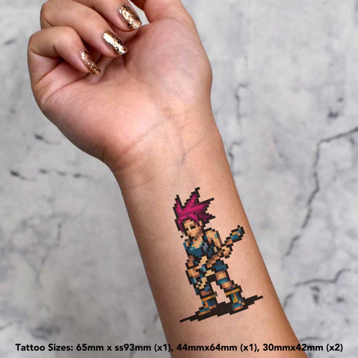 'Punk Girl Playing Guitar Pixel Art' Temporary Tattoos - Water Resistant, Skin-Safe, Non-Toxic Transfers (TO044073)