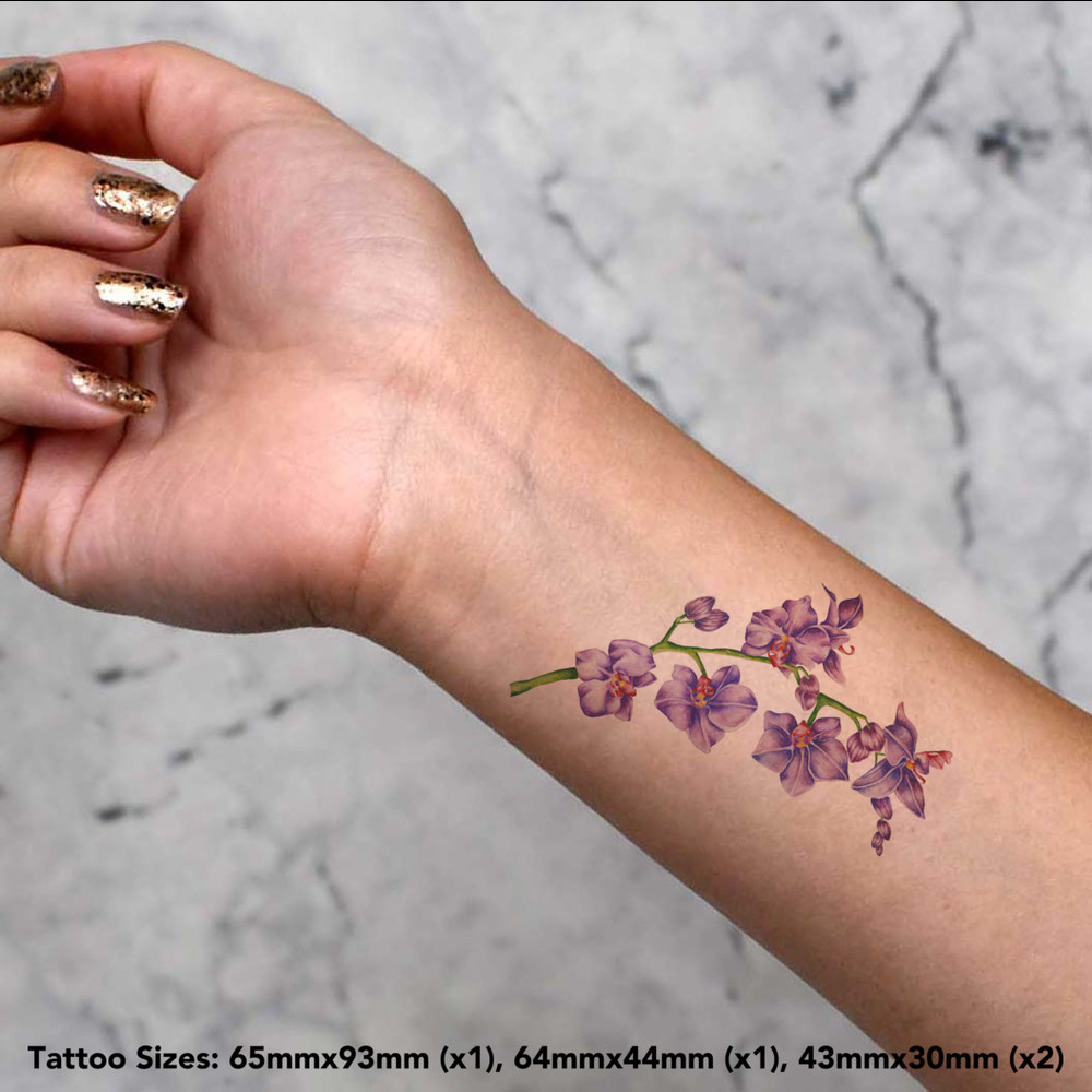 'Purple Orchid Branch' Temporary Tattoos - Water Resistant, Skin-Safe, Non-Toxic Transfers (TO030381)