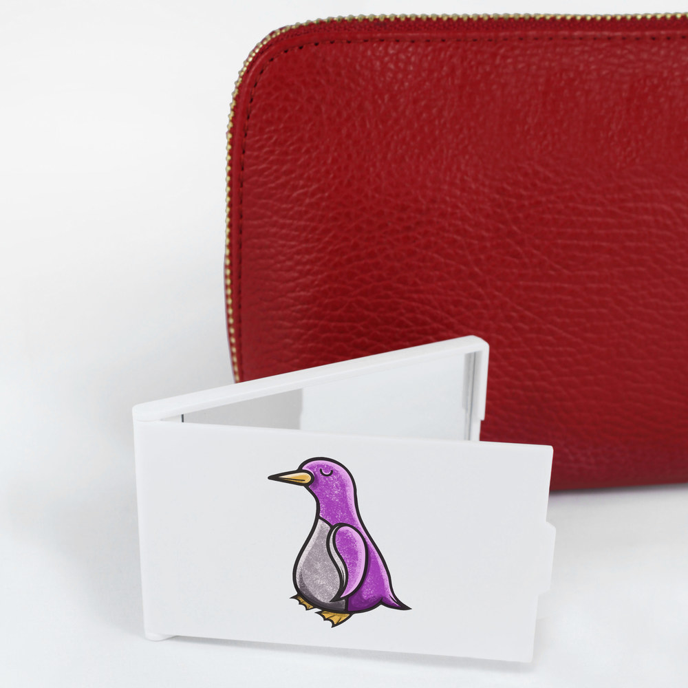 'Purple Penguin' Compact / Travel / Pocket Makeup Mirror (CM00024393)