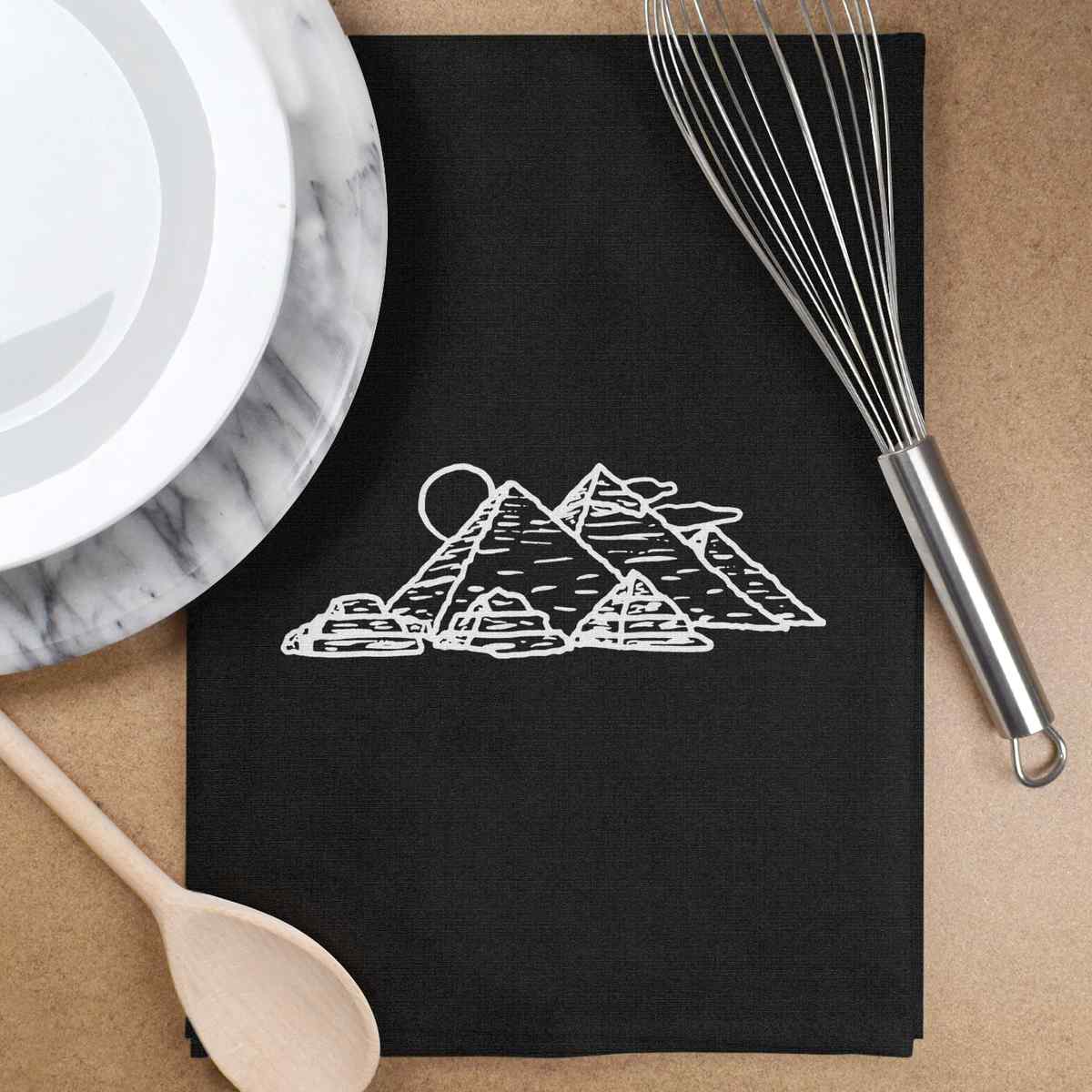 'Pyramids' Black Cotton Tea Towel / Dish Cloth (TW00045260)