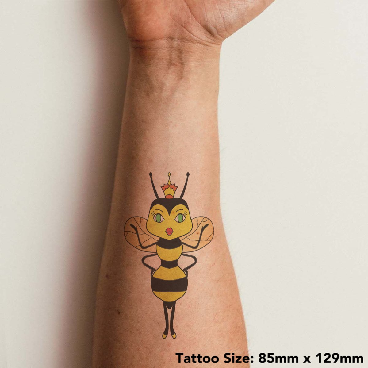 'Queen Bee' Temporary Tattoo - Water Resistant, Skin-Safe, Non-Toxic Transfer (TO00060999)