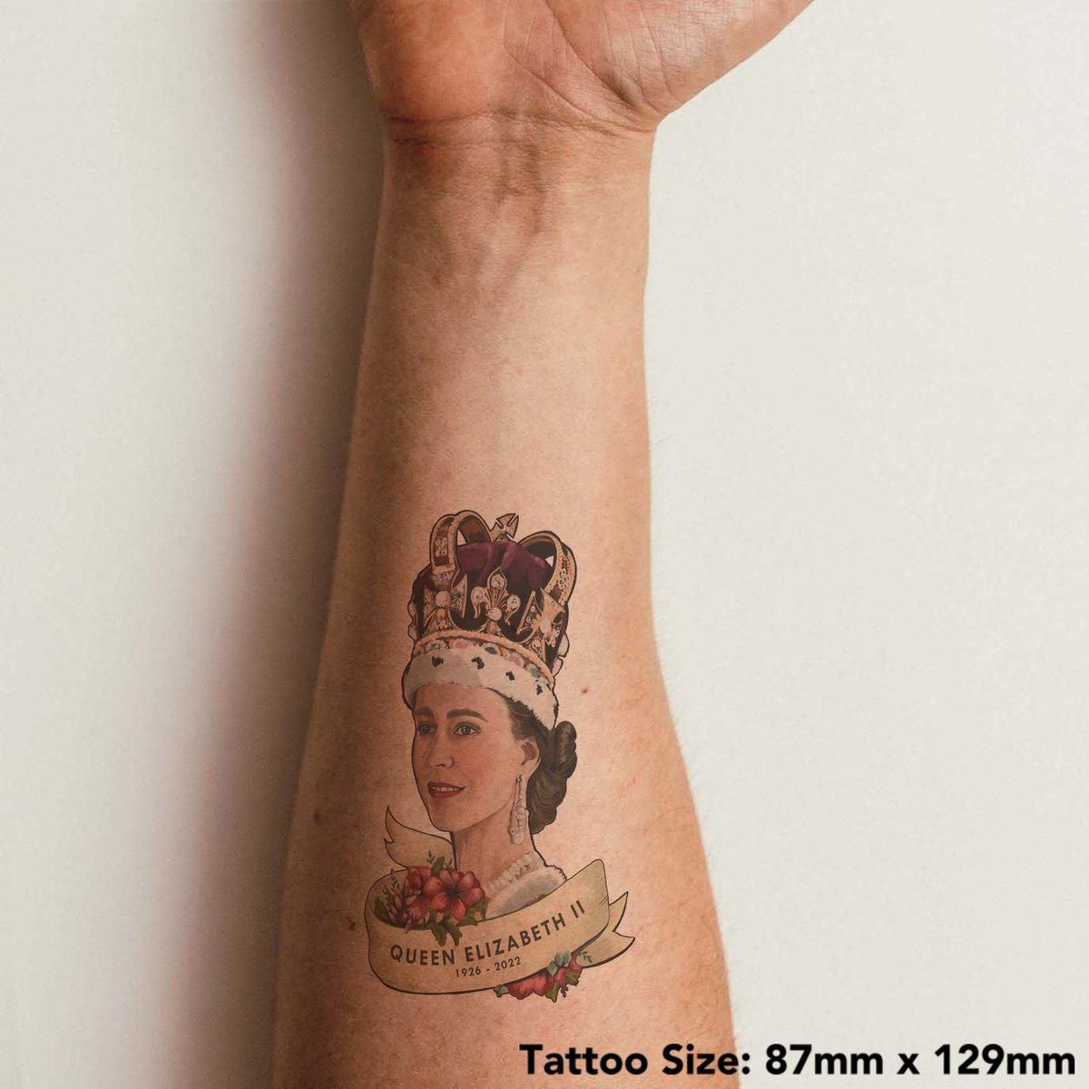 'Queen Elizabeth II Portrait' Temporary Tattoo - Water Resistant, Skin-Safe, Non-Toxic Transfer (TO00051666)