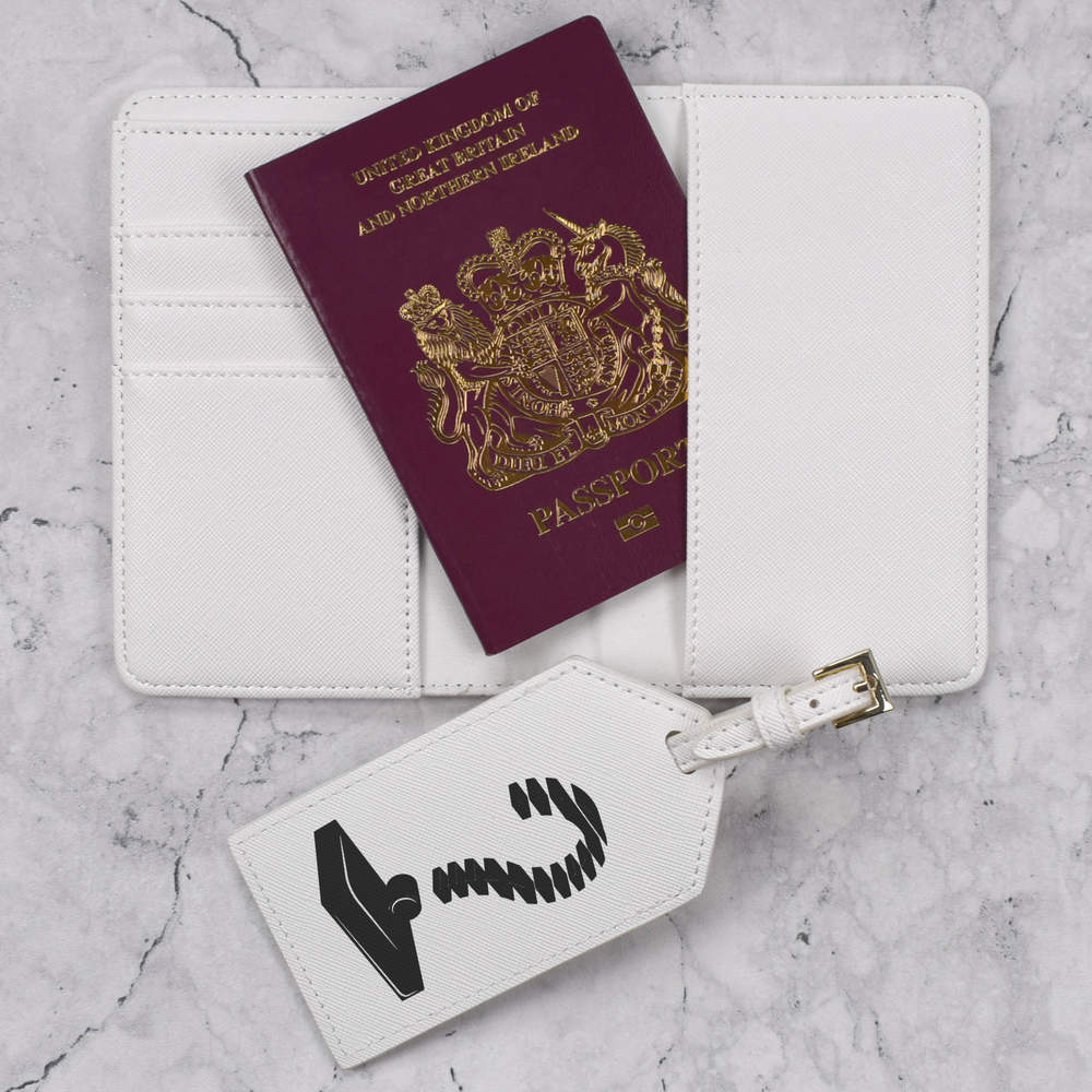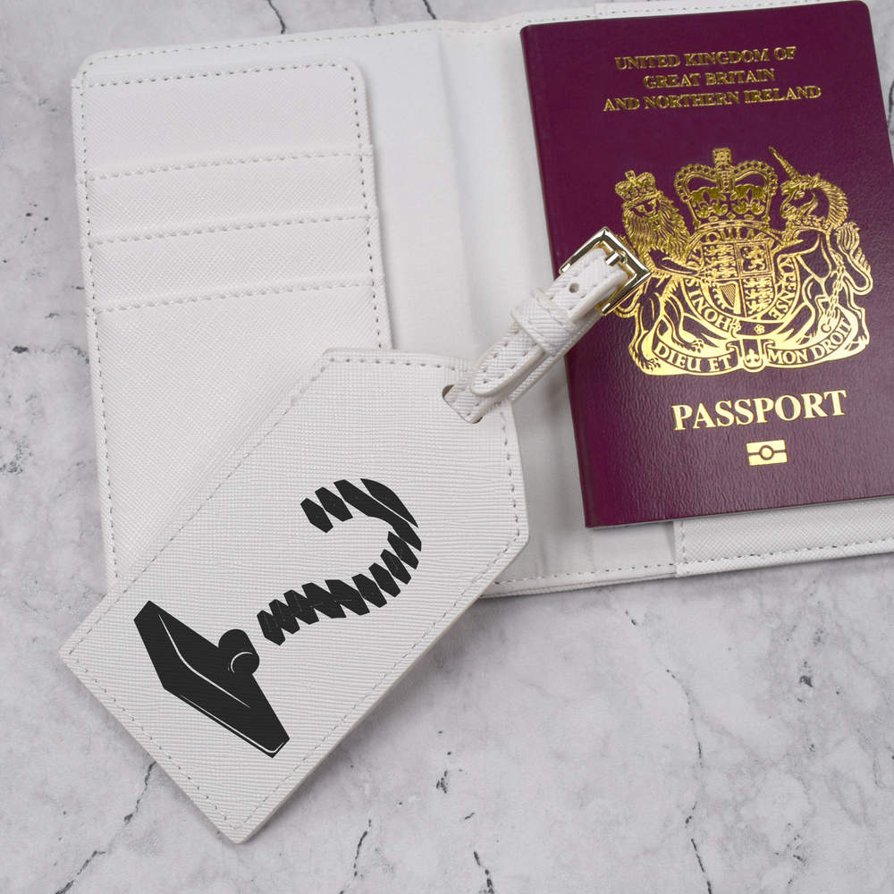 A luxury travel set for holiday makers and jet setters! This premium duo consists of a passport cover and matching luggage tag; both made from white, leather-look PU and printed with a unique design.