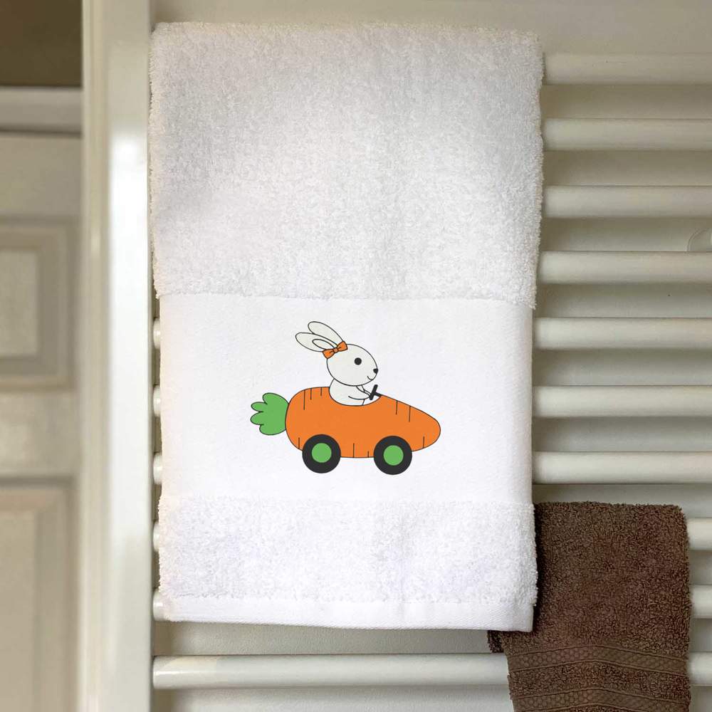 'Rabbit Driving Carrot Car' Hand / Guest Towel (TL00040962)