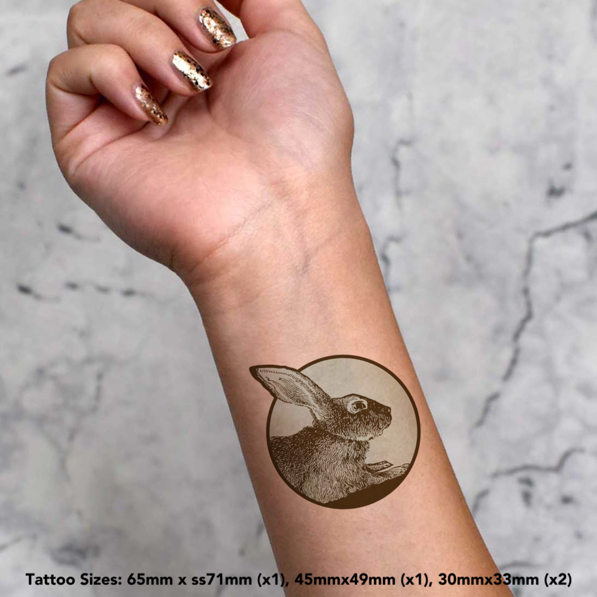 'Rabbit Motif' Temporary Tattoos - Water Resistant, Skin-Safe, Non-Toxic Transfers (TO037610)