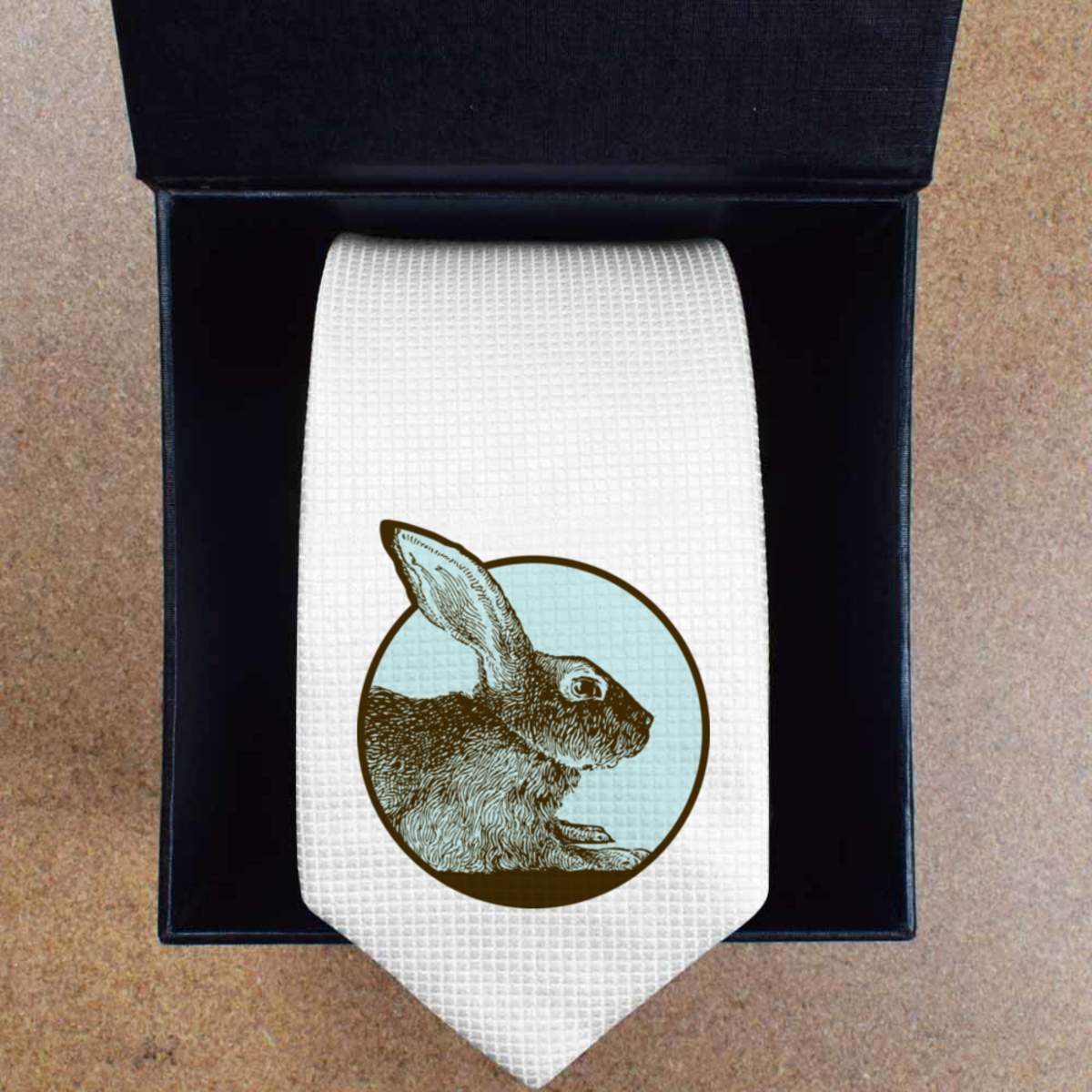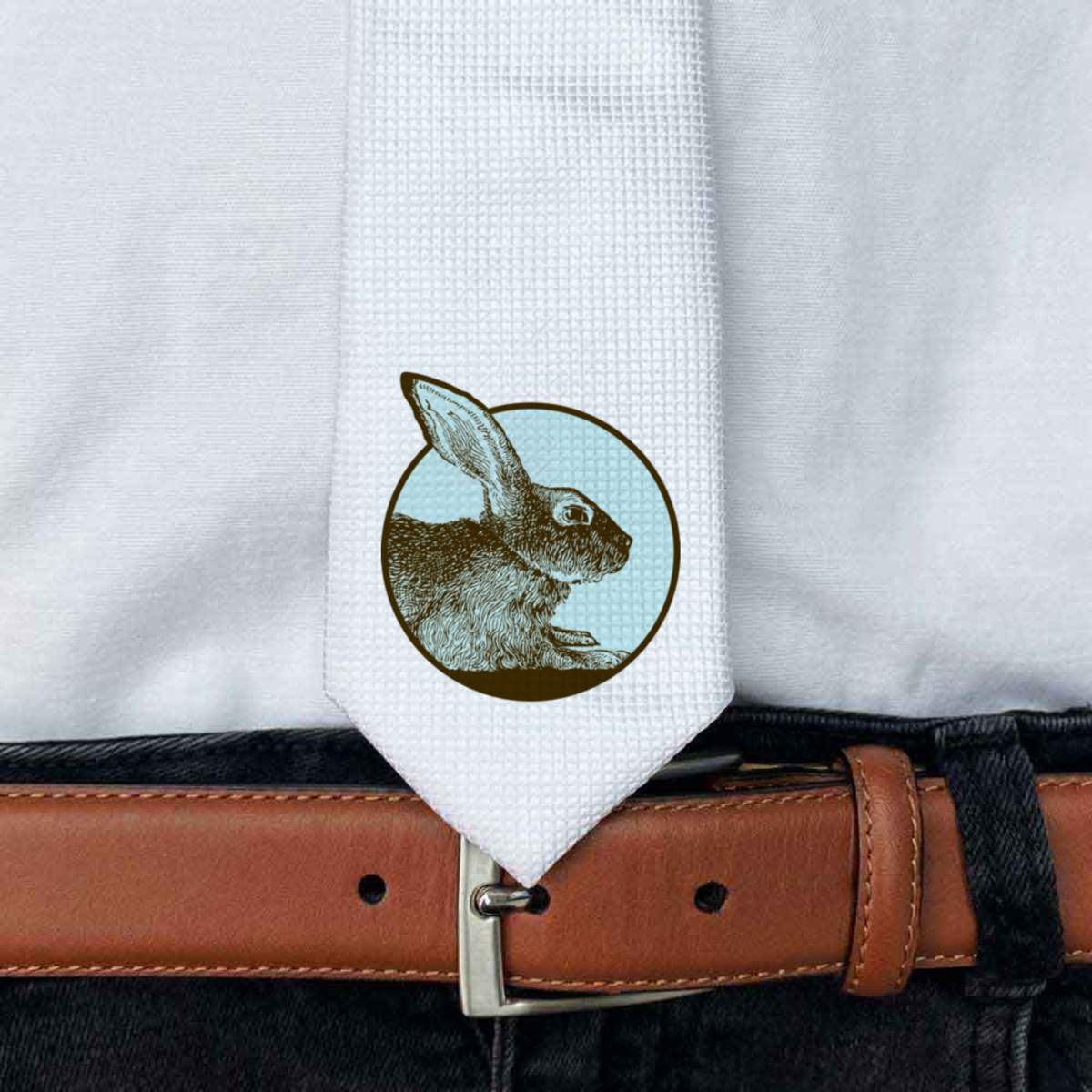 'Rabbit Motif' White Tie / Necktie with Gift Box (AT00012505)