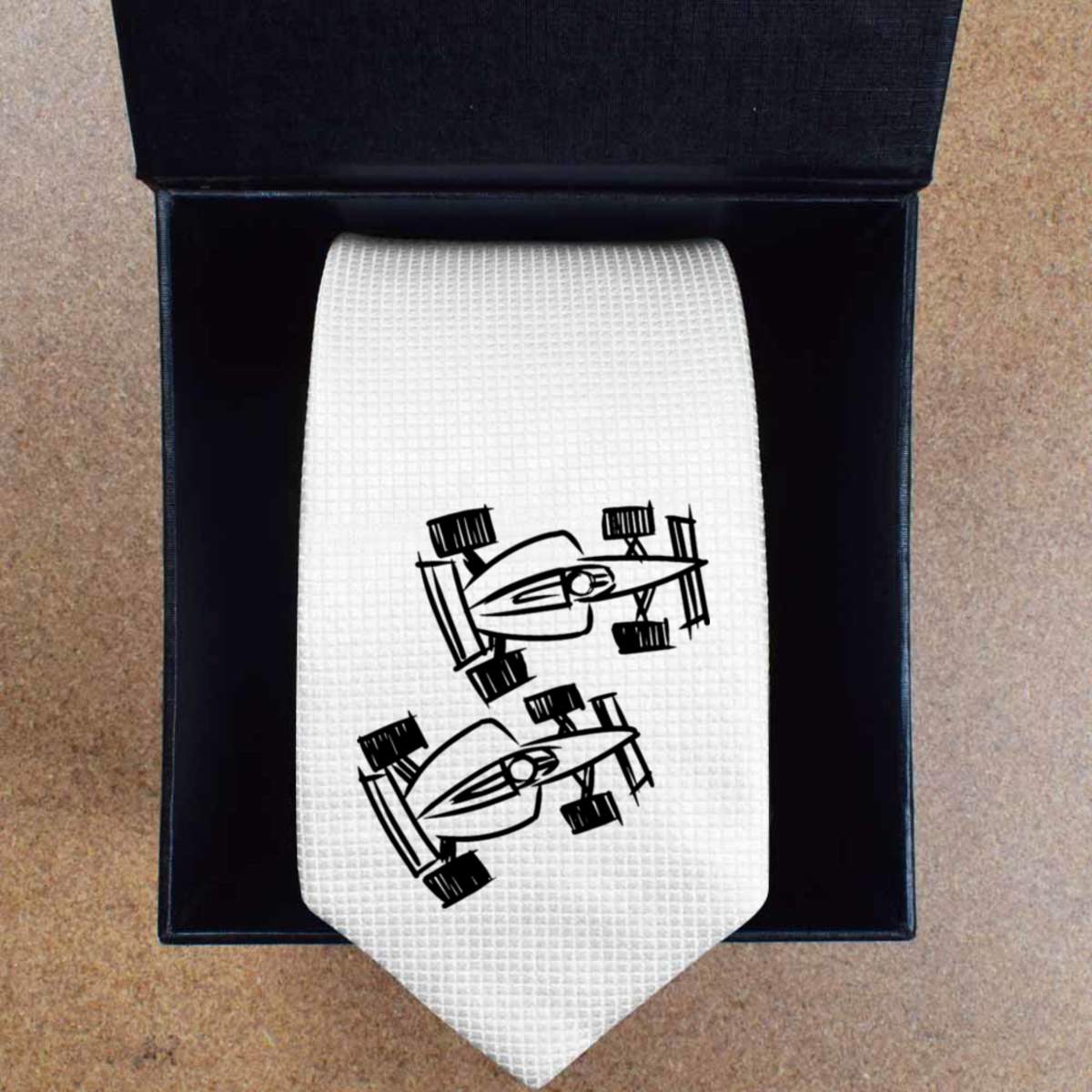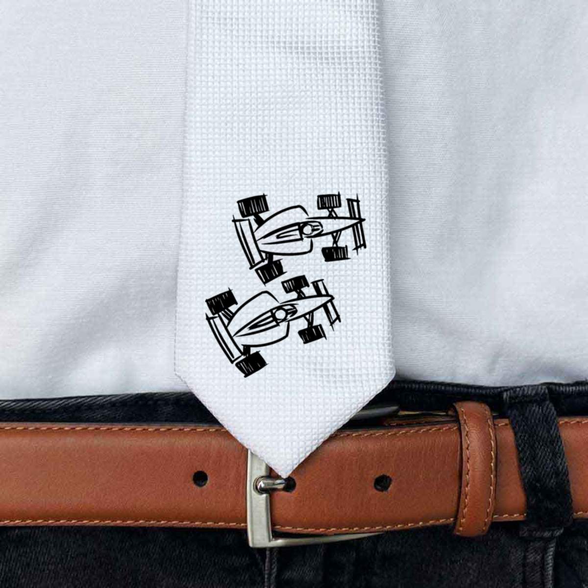'Racing Cars' White Tie / Necktie with Gift Box (AT00002502)