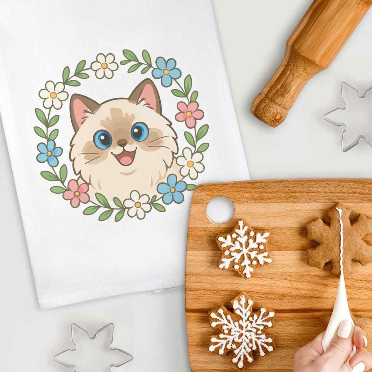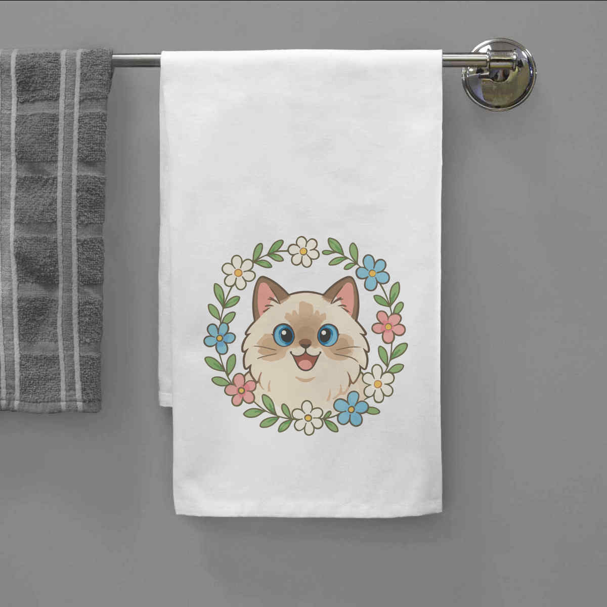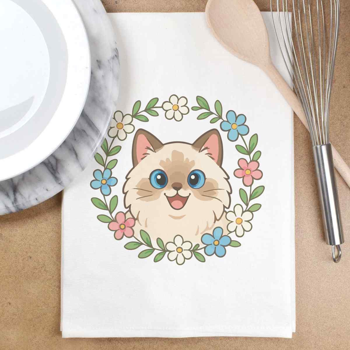 'Cat, Kitten, Pet, Animal, Cute, Fluffy, Meow, Feline, Cartoon, Floral, Wreath, Flower, Frame, Ragdoll'