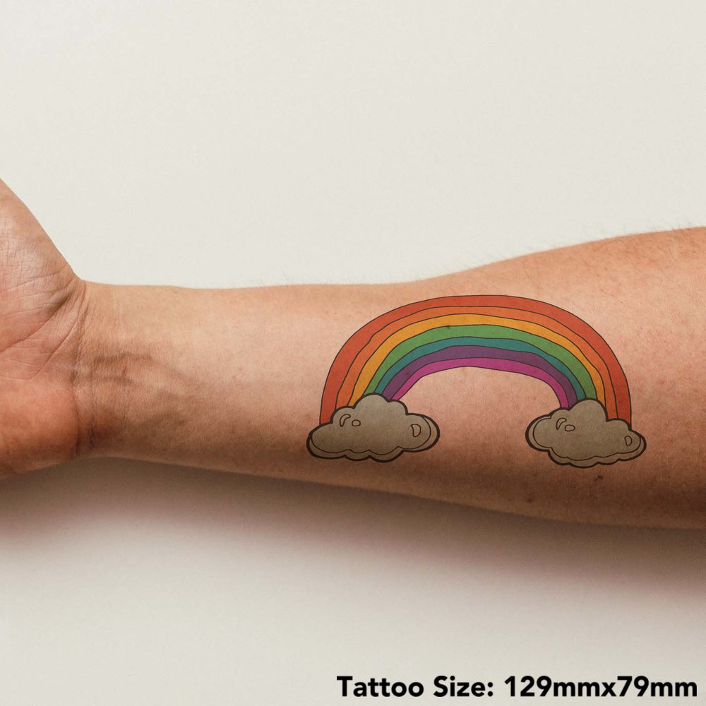 'Rainbow & Clouds' Temporary Tattoo - Water Resistant, Skin-Safe, Non-Toxic Transfer (TO00032440)