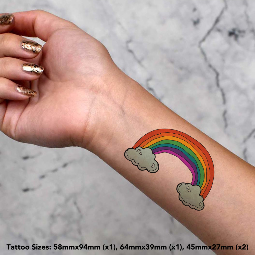 'Rainbow & Clouds' Temporary Tattoos - Water Resistant, Skin-Safe, Non-Toxic Transfers (TO024889)