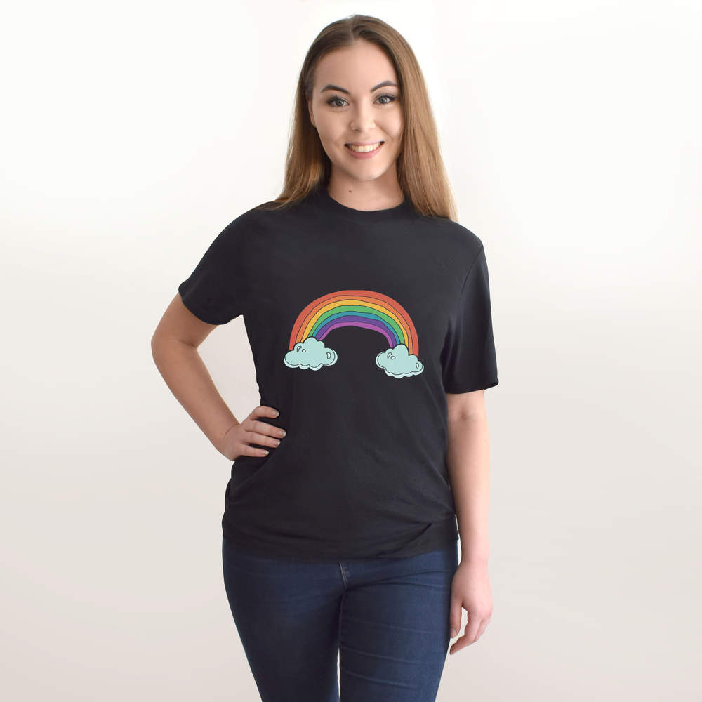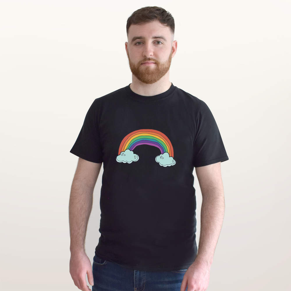 'Rainbow & Clouds' Unisex T-Shirt - 100 % Cotton, Black, XXL (TA00241520)