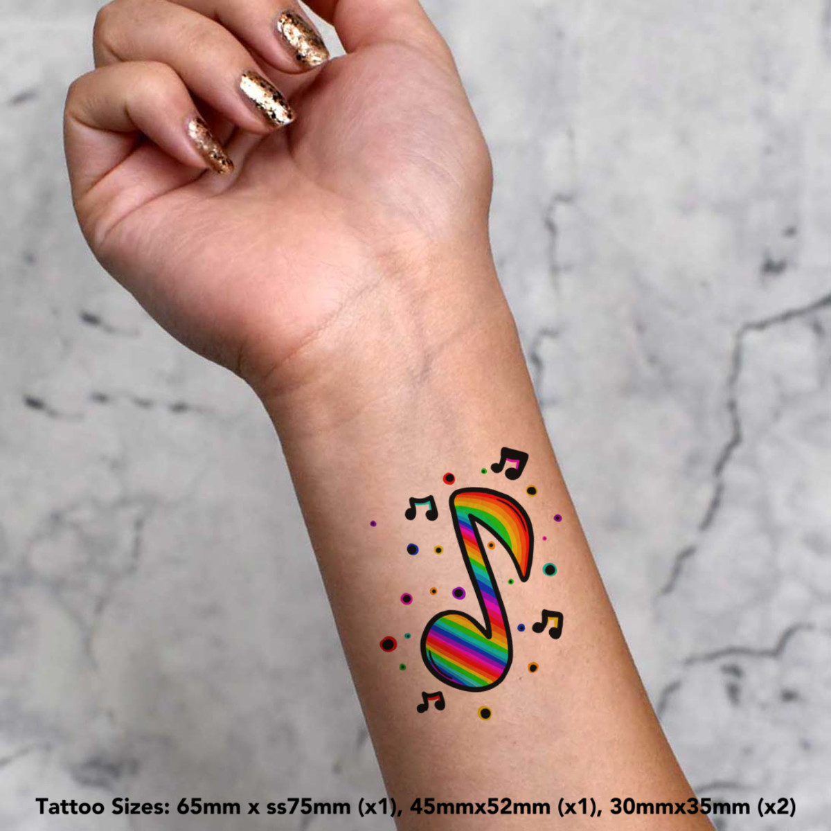 'Rainbow Music Notes' Temporary Tattoos - Water Resistant, Skin-Safe, Non-Toxic Transfers (TO031382)