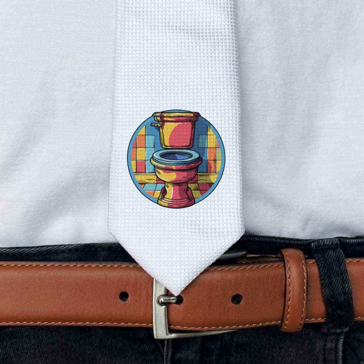 This stylish slim white tie is guaranteed to add class to any outfit. Printed on the front with a design from one of our talented designers, these ties are perfect for formal events, special occasions or making a statement at the office.