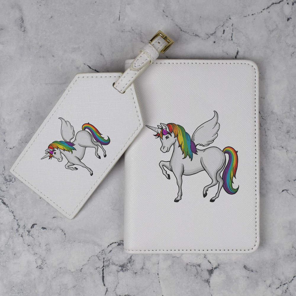 'Rainbow Unicorn' Passport Cover & Luggage Tag Travel Set (PA00020586)