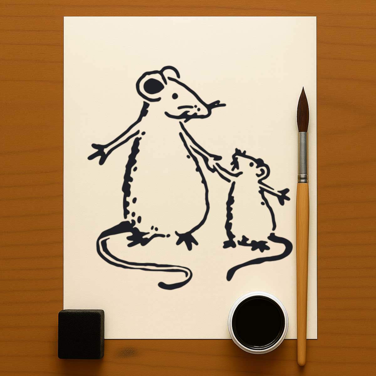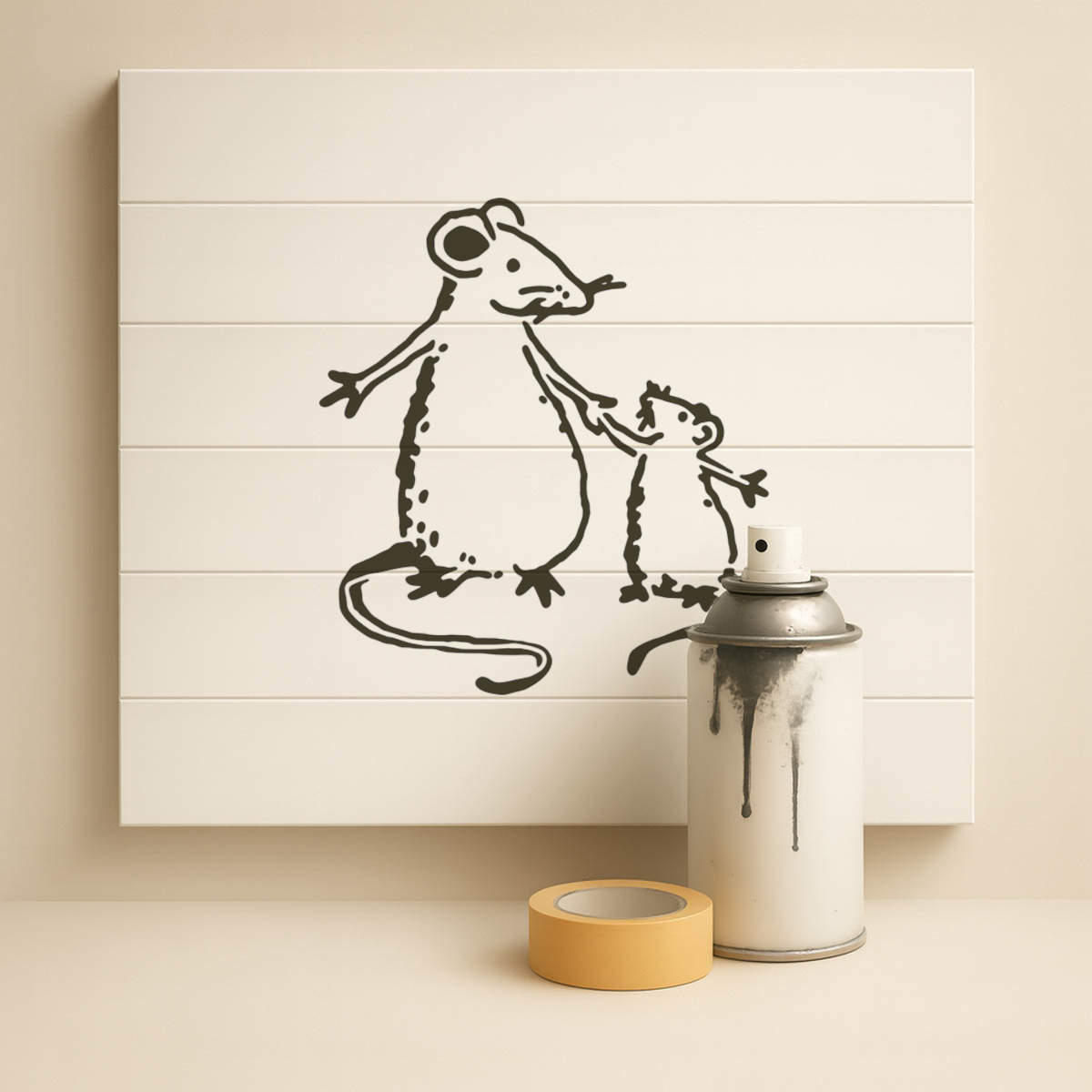 'Rat Mother & Child' Reusable Stencil – Durable Decorative Template for Painting and Spraying on Walls, Tiles, Wood, Fabric & Craft Projects - M (A5) (WS00041886)
