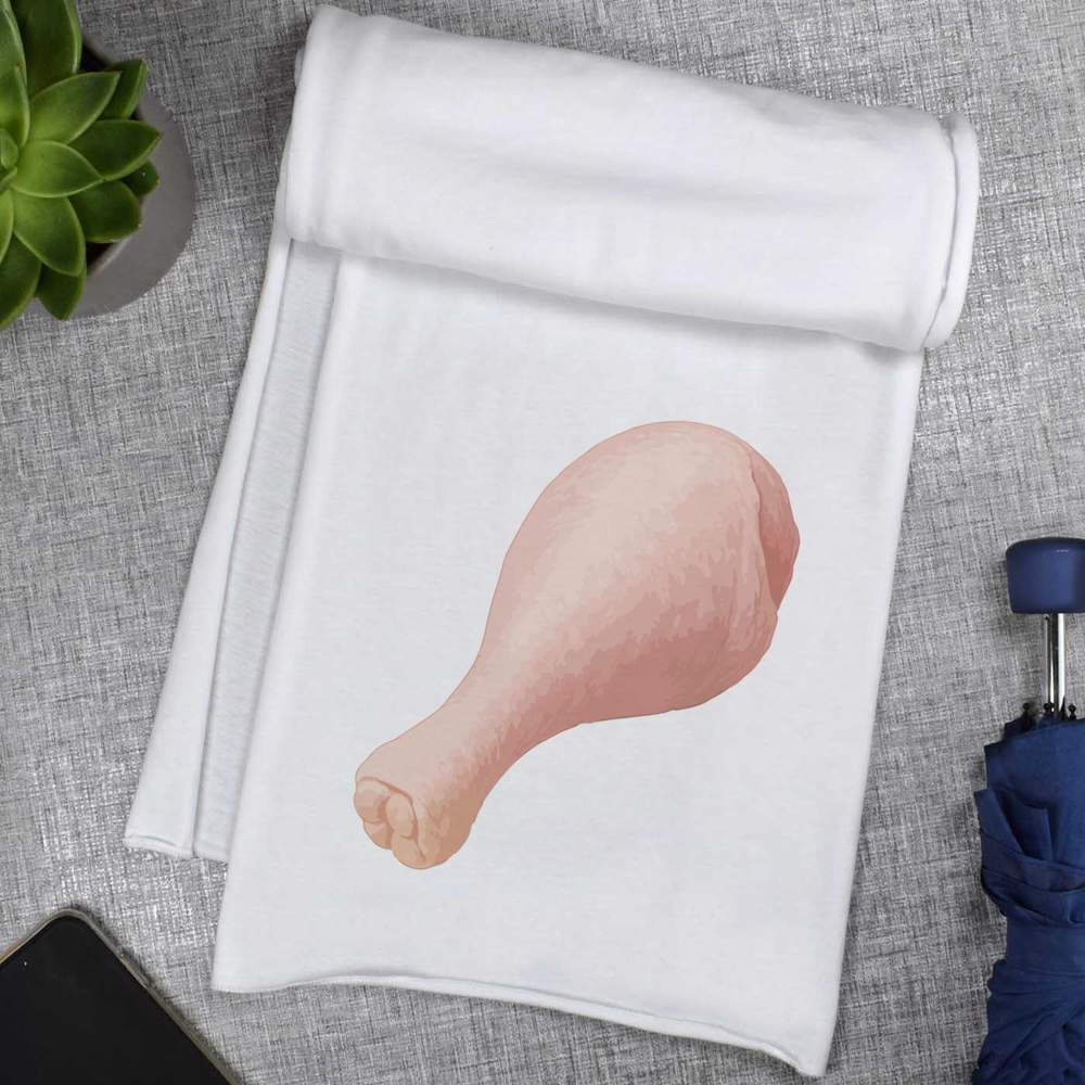 'A raw chicken drumstick with a pale pink color and subtle textures, ready for a home-cooked meal.'