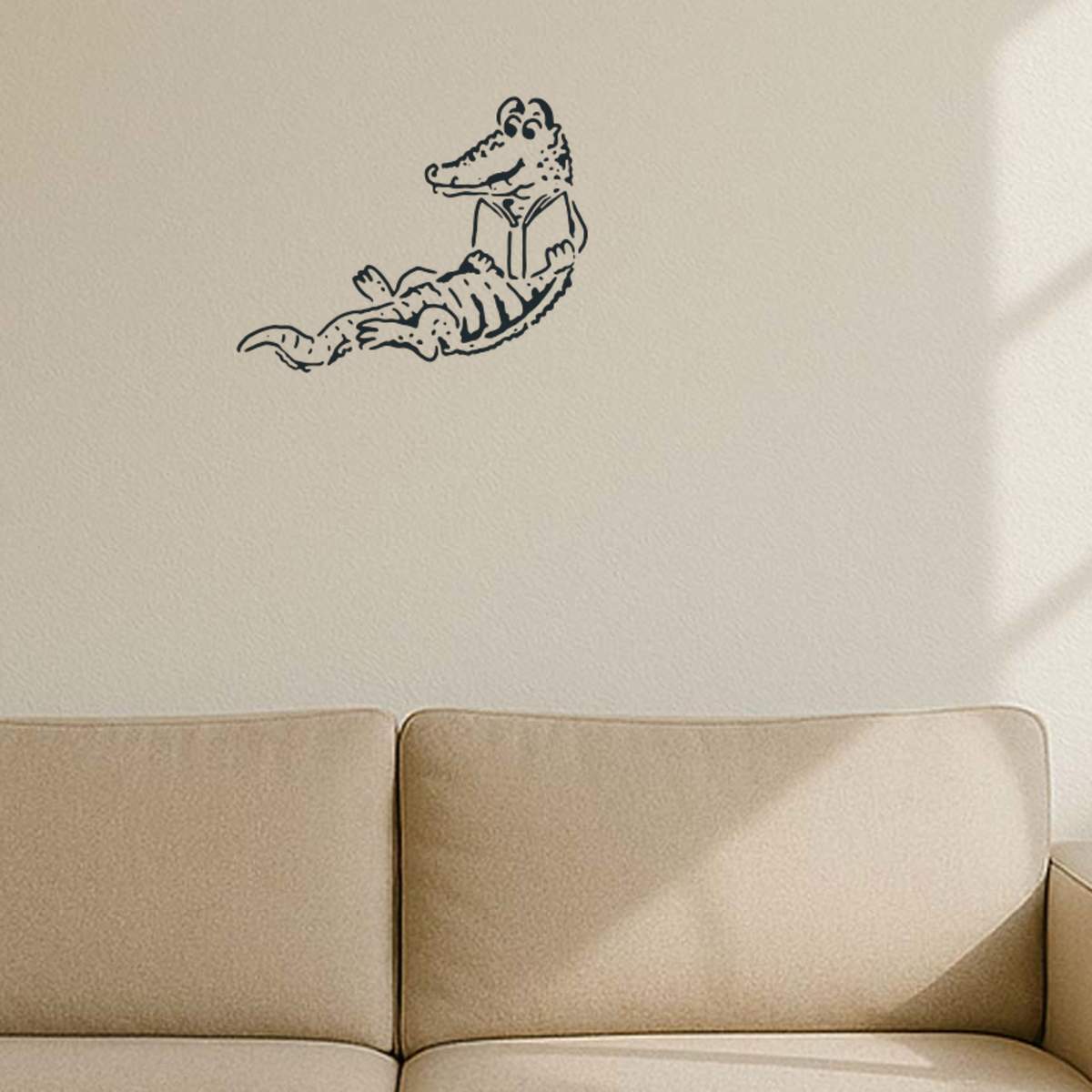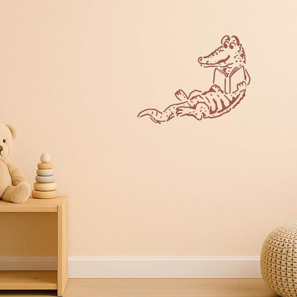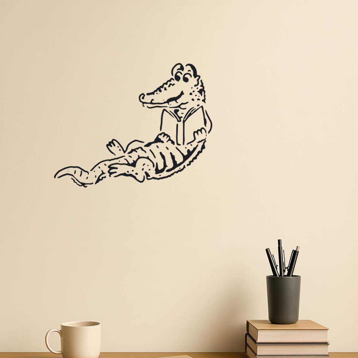 'Reading Crocodile' Reusable Stencil – Durable Decorative Template for Painting and Spraying on Walls, Tiles, Wood, Fabric & Craft Projects - L (A4) (WS00005049)