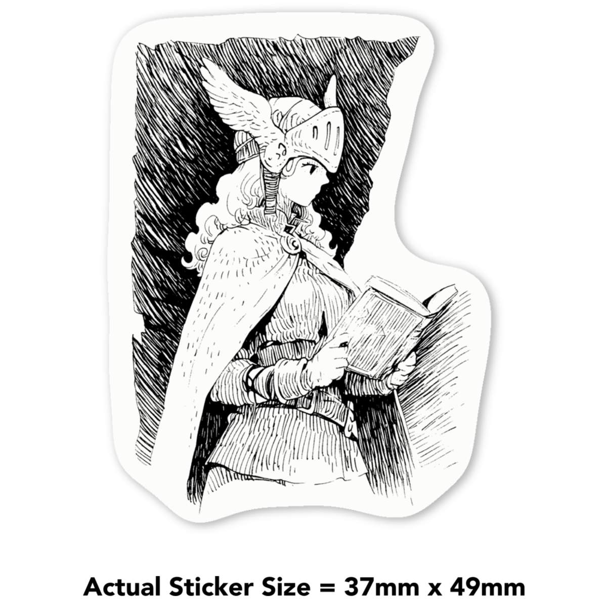 'ink drawing, fantasy, armored character, winged helmet, reading, book, medieval, sketch, monochrome, detailed armor, warrior, female knight, artistic, pen and ink, illustration, fantasy art, traditional art, vintage style, character design, mythical'