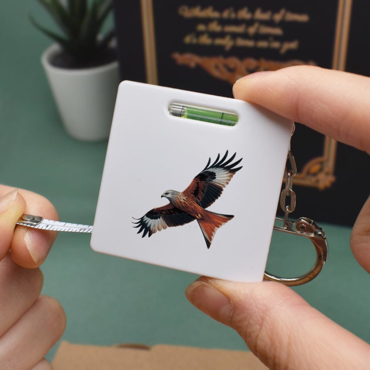 This multifunctional tool offers both a tape measure and spirit level in one handy little accessory. The retractable, 1 metre tape measure has both imperial and metric units, while the flat edges around its plastic casing provide the ability to check both vertical and horizontal surfaces with a mini spirit level. The compact and lightweight design makes it easy to carry around; simply attach with the keychain provided and whip it out when needed. Each keyring tape measure tool is printed on one side with a unique design.