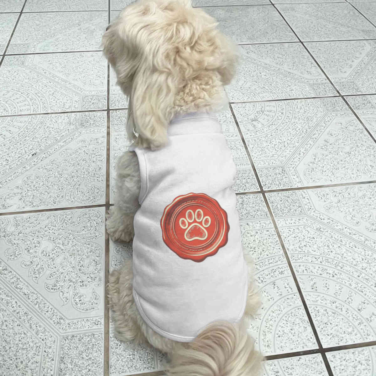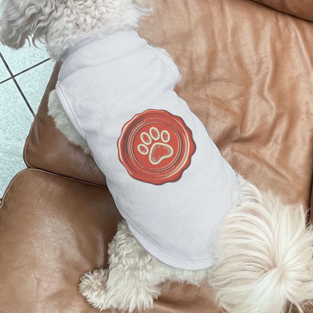 Give your furry friend a fresh new look with this adorable white dog T-shirt, designed to turn heads with its unique print on the back! Made from 100% polyester, it offers a comfortable yet firm stretch, perfect for both playtime adventures and cozy cuddles. Whether your dog loves to play outdoors or cuddle indoors, this T-shirt provides all-day comfort and style.