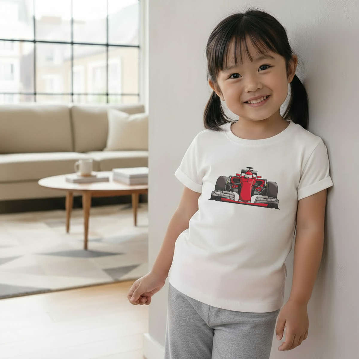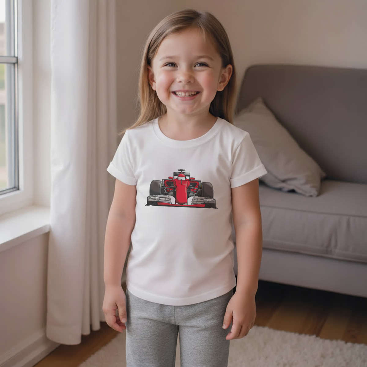 'Red Race Car' Kids Cotton Pyjama Set – Comfortable Children's Nightwear, Sleepwear and Loungewear - High-Speed Racing Vehicle Front View - Unisex for Boys and Girls - Grey, 3-4 Ye