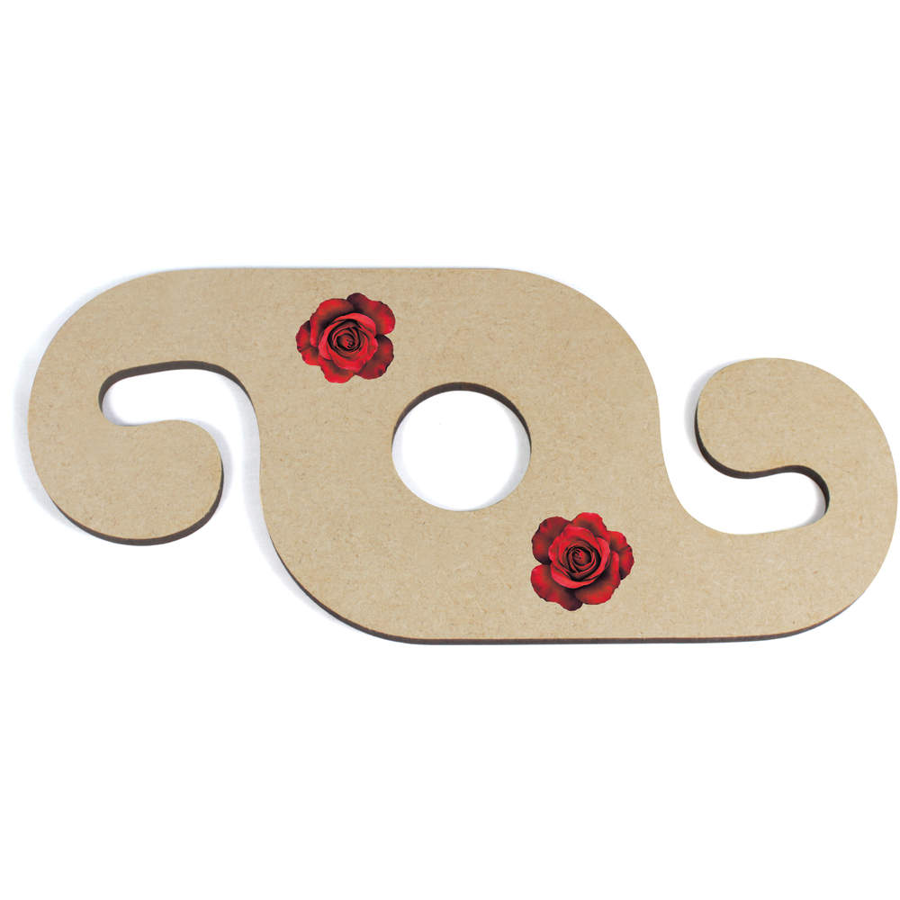 Ideal for dinner parties, weddings and special occasions, this beautiful laser cut wooden wine glass holder fits on most wine and champagne bottles. It is printed on one side with a fabulous design and holds two wine glasses or champagne flutes.