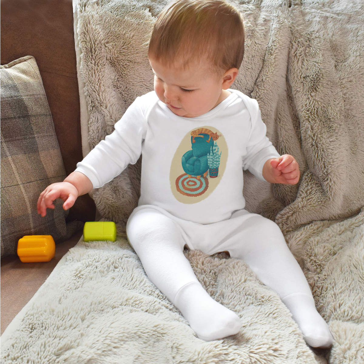 Little ones can sleep peacefully in this super soft romper sleepsuit. Our unisex jumpsuits are made from 100% cotton and are printed on the front with a unique design. Practical functions include popper fastenings for ease of changing and built-in feet.