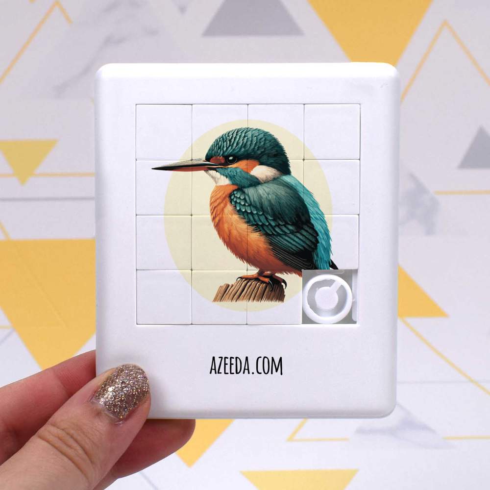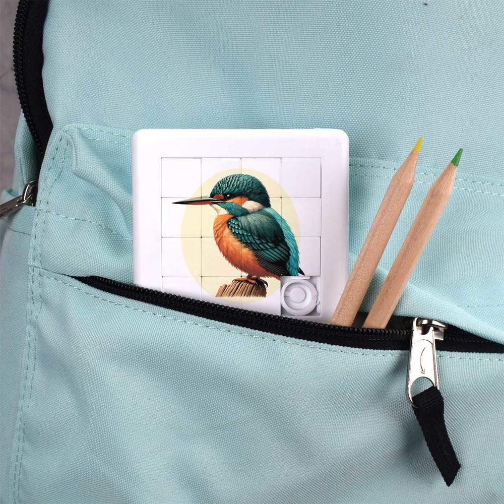 - Pocket sized puzzle with sliding square pieces
