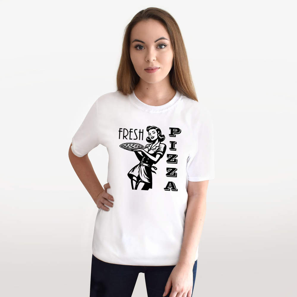'Retro Pizza Girl' Unisex T-Shirt - 100 % Cotton, White, XXL (TA00364442)