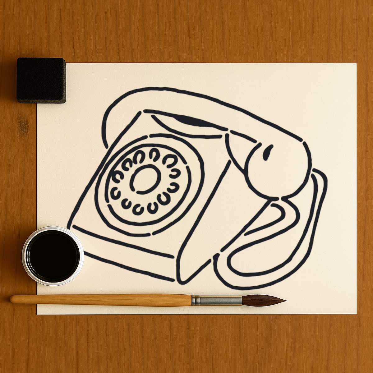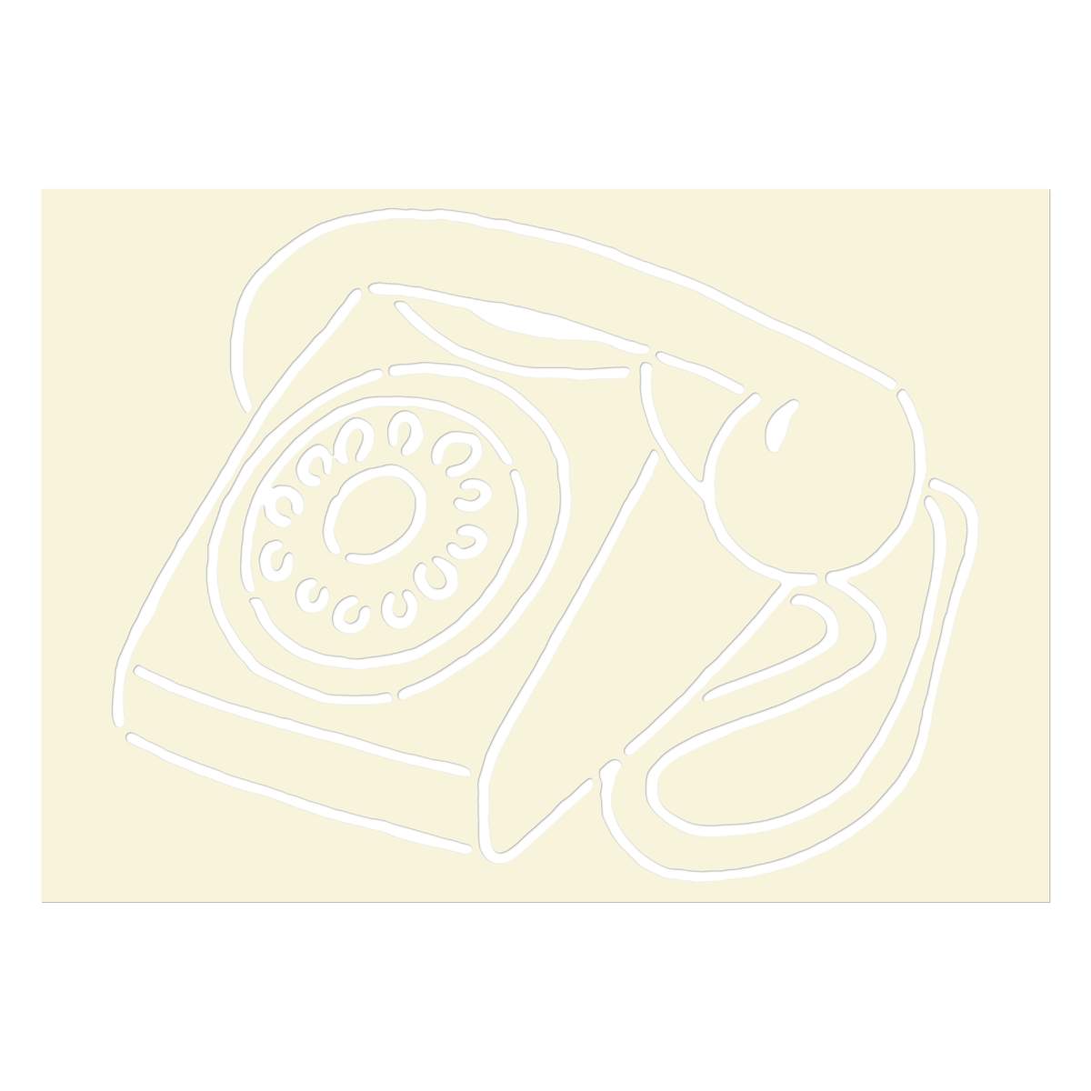 'Retro Telephone' Reusable Stencil – Durable Decorative Template for Painting and Spraying on Walls, Tiles, Wood, Fabric & Craft Projects - M (A5) (WS00035820)