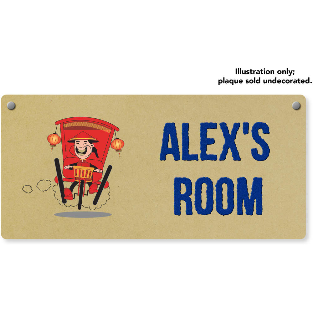 The plaques are made from a slim 3mm MDF - making them durable, but also very light. They have two holes, one in each of the top corners, and can either be screwed in place or have rope threaded through them to hang them. Neither screws nor rope are included with the plaque.