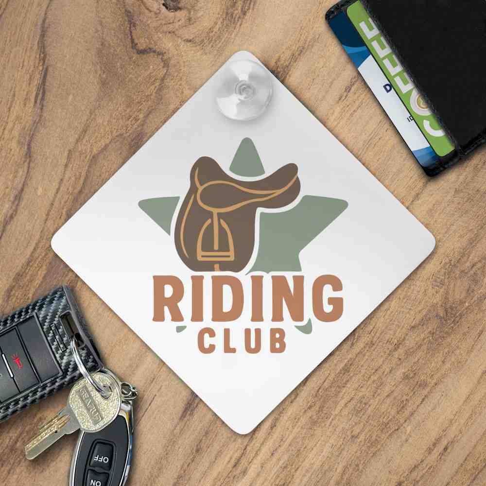 'A stylish emblem for a riding club, featuring a classic saddle and star, perfect for horse enthusiasts.'