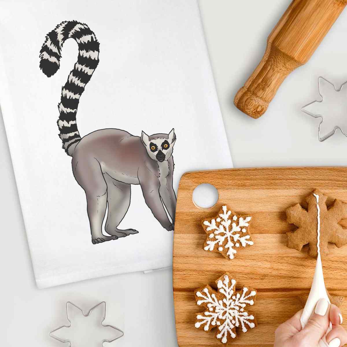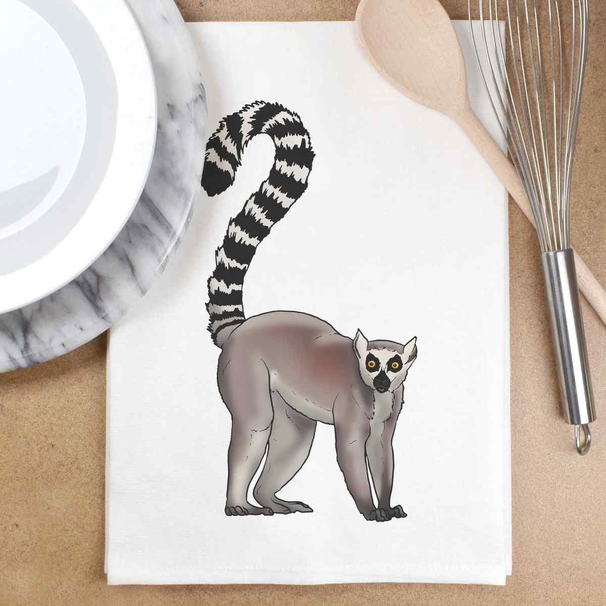'Ring-Tailed Lemur' Cotton Tea Towel / Dish Cloth (TW032387)