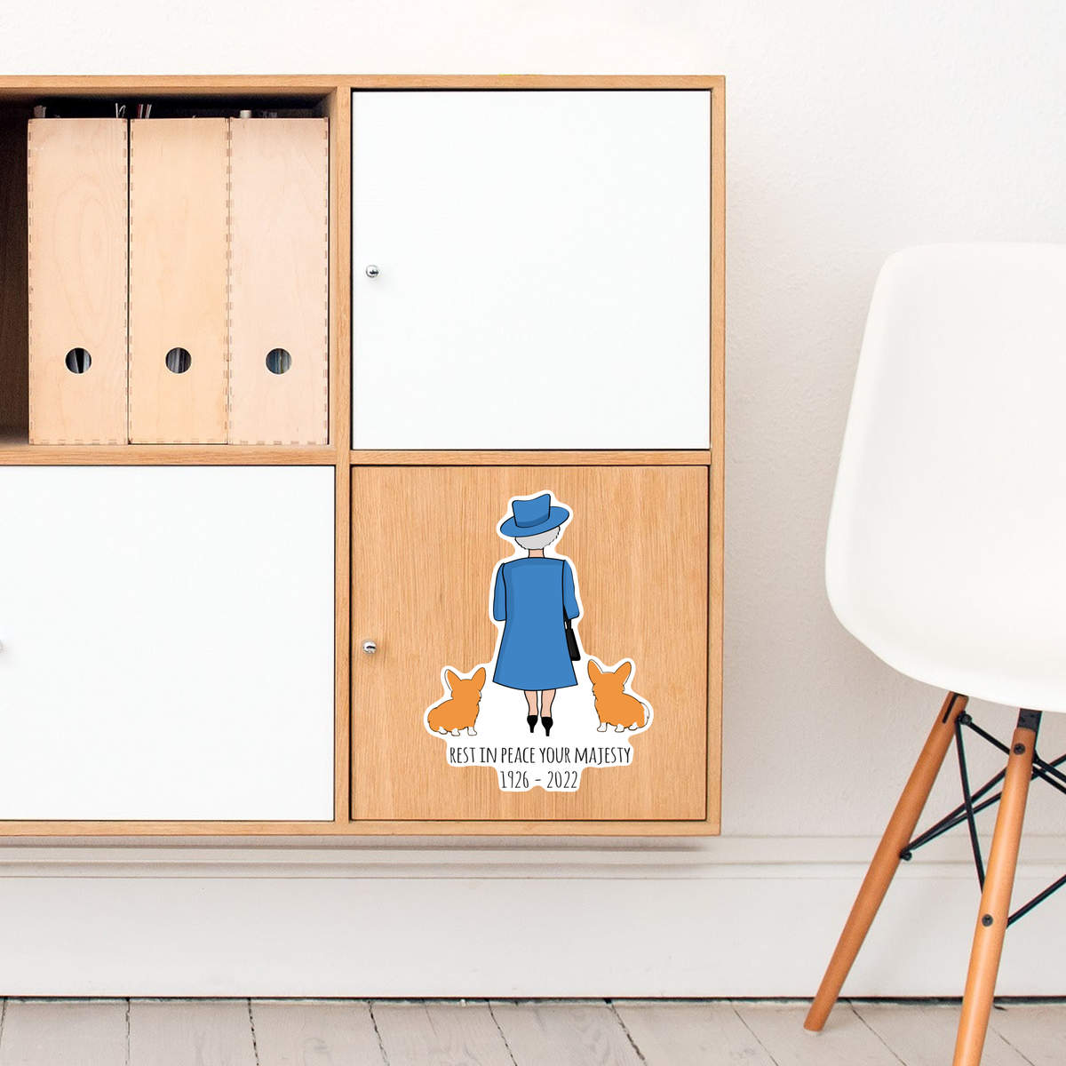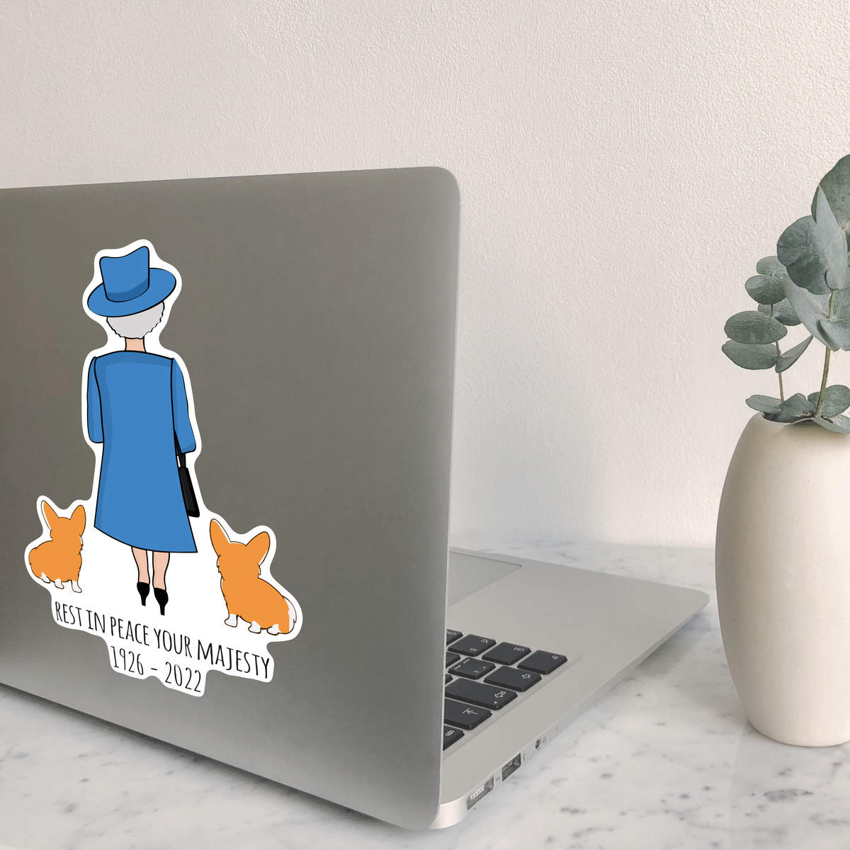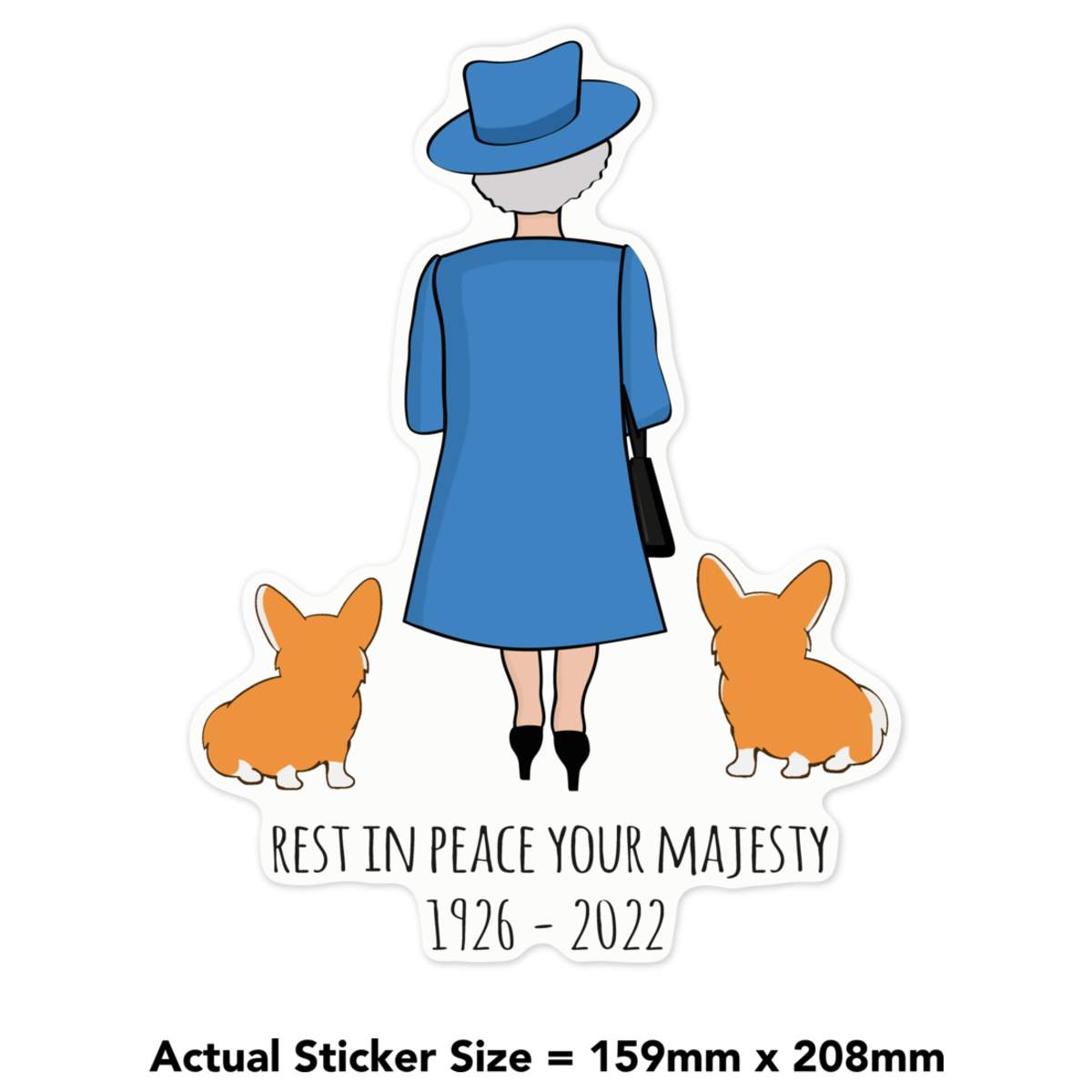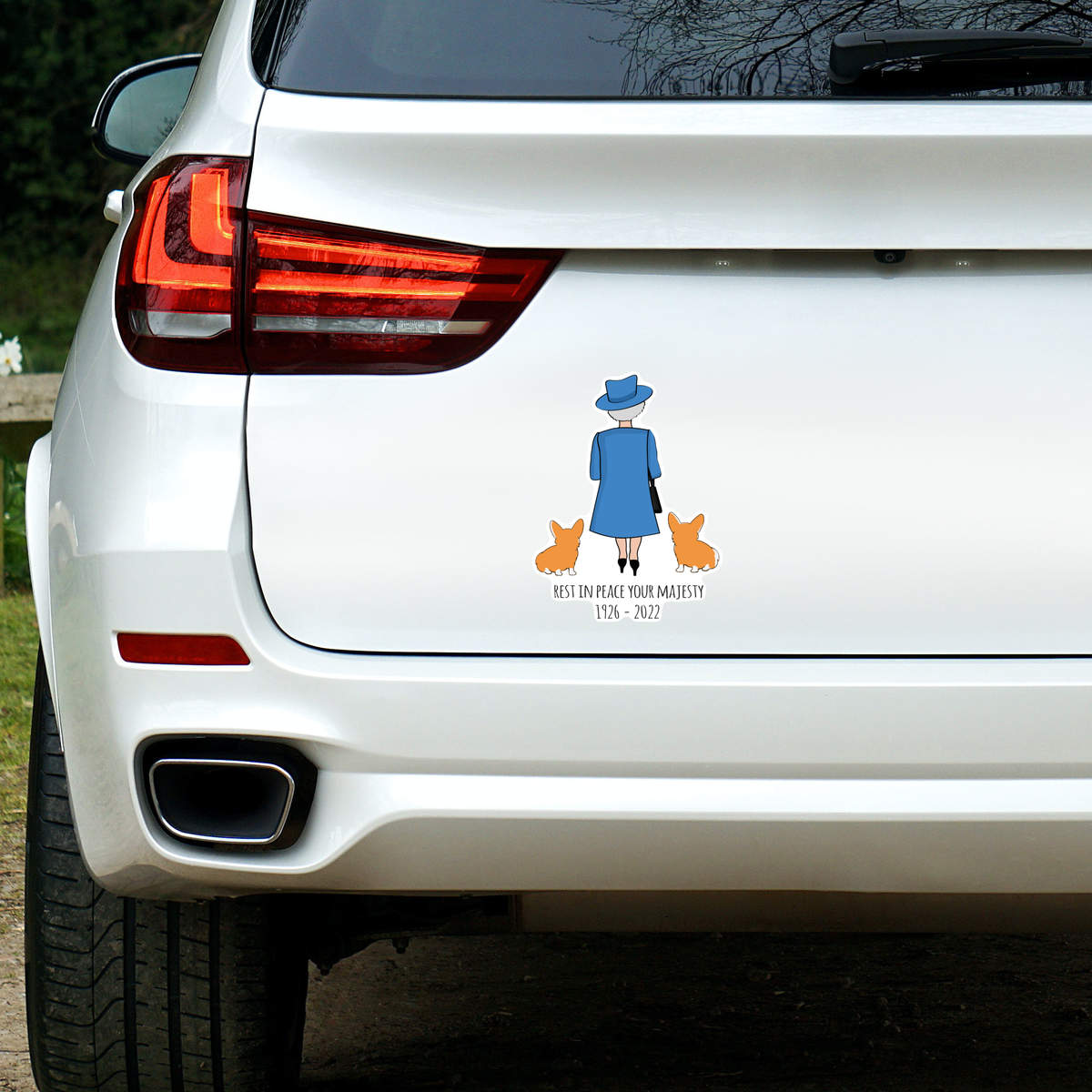 'RIP Queen & Corgies' White Premium Vinyl Decal Sticker – Waterproof, Durable & Easy to Apply - For Car Bumpers, Windows, Bins & More - Large (210mm) (DW00070811)