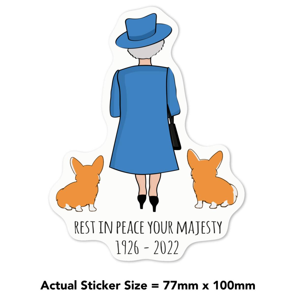 'RIP Queen & Corgies' White Premium Vinyl Decal Sticker – Waterproof, Durable & Easy to Apply - For Car Bumpers, Windows, Bins & More - Medium (100mm) (DW00070810)