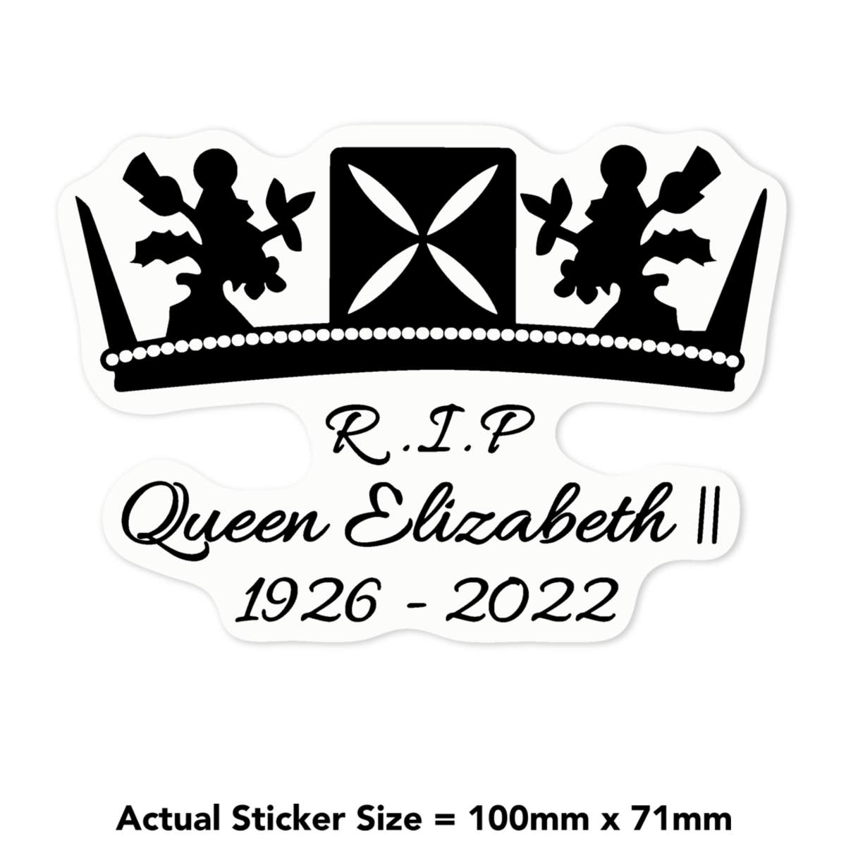 'RIP Queen Elizabeth' Clear Premium Vinyl Decal Stickers – Waterproof, Durable & Easy to Apply - For Car Bumpers, Windows, Bins & More - Medium (100mm) (DC00109754)