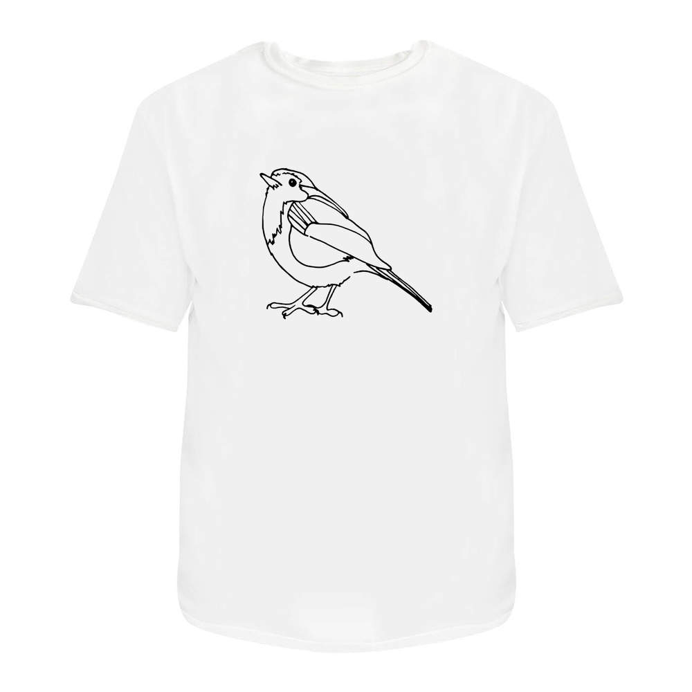 'Robin Redbreast Bird' Unisex T-Shirt - 100 % Cotton, White, S (TA00019365)