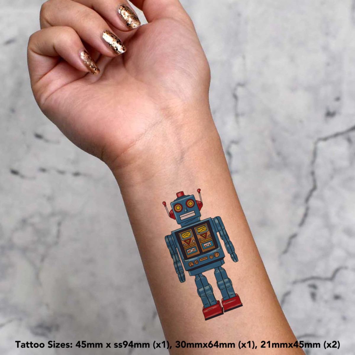 'Robot Toy' Temporary Tattoos - Water Resistant, Skin-Safe, Non-Toxic Transfers (TO026763)