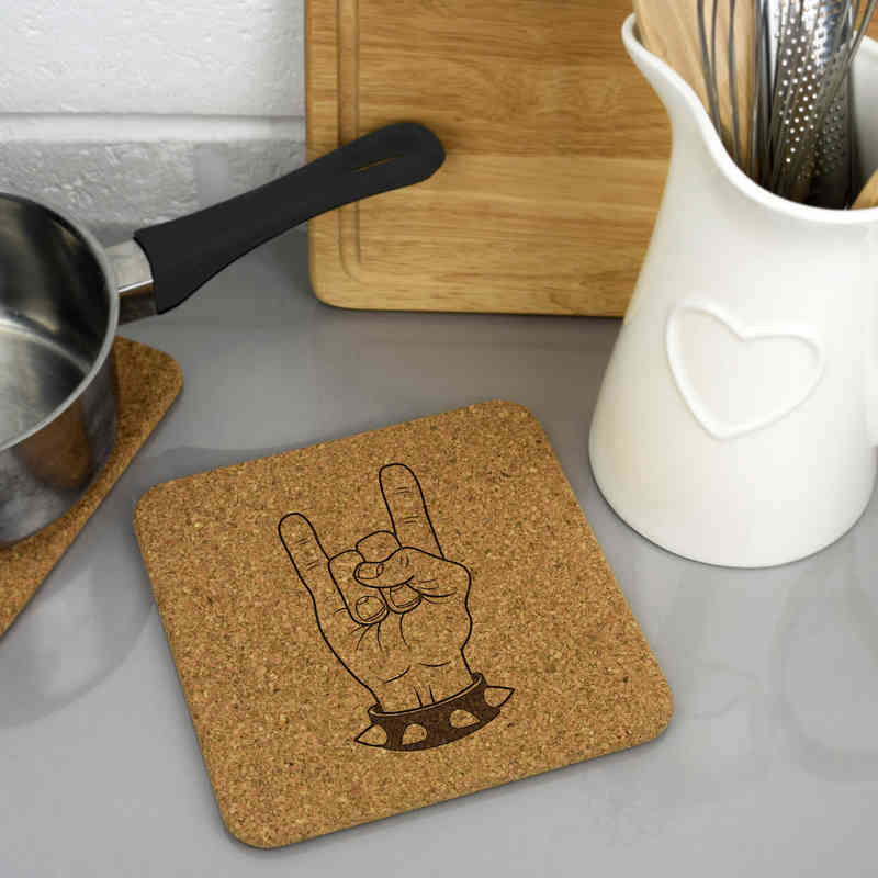 'Rock Hand' Square Cork Trivet / Pot Stand (TR00018096)