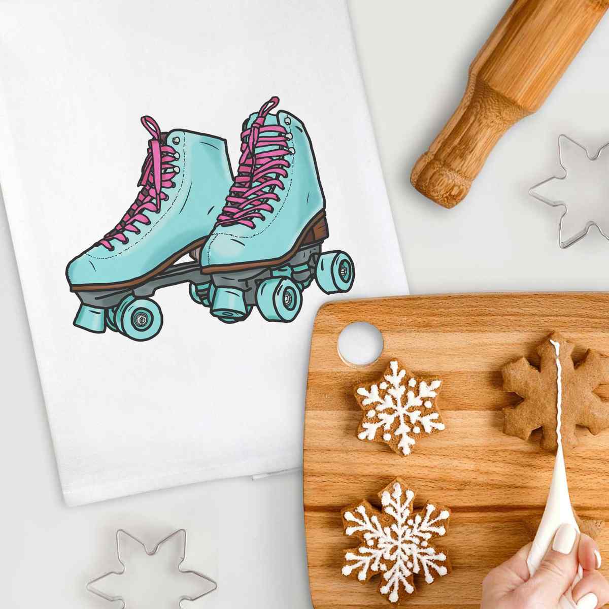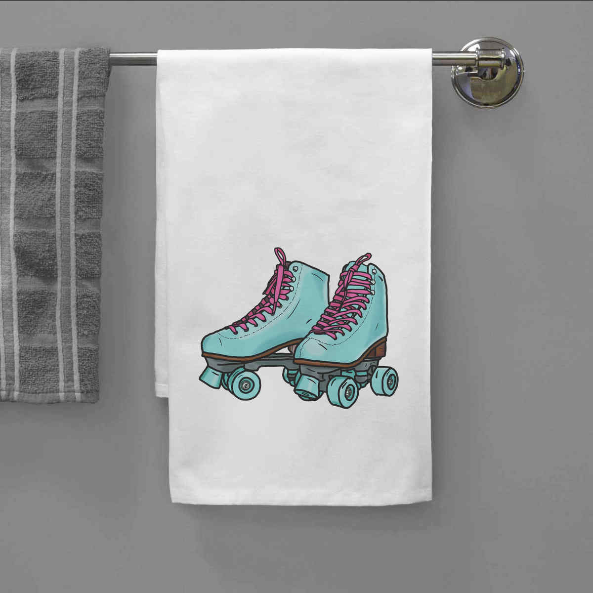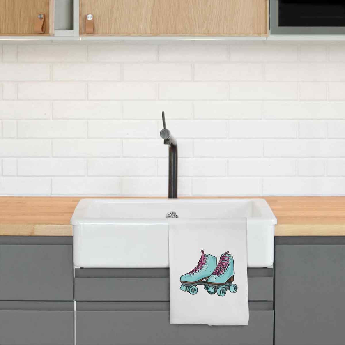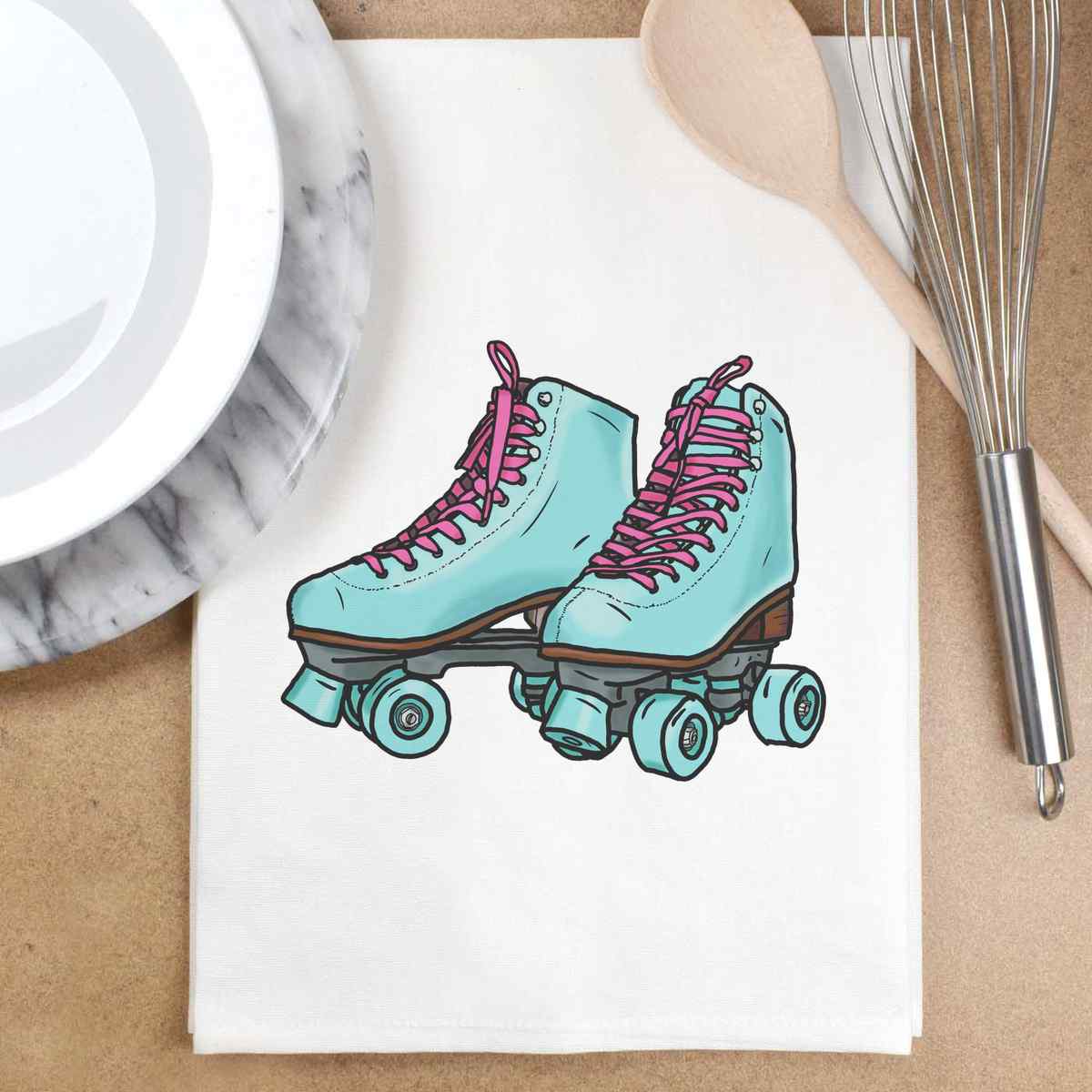 'Roller Skates' White Cotton Tea Towel / Dish Cloth (TW00017726)