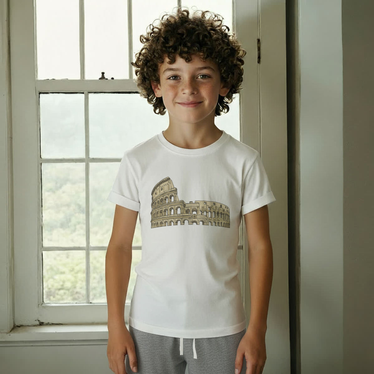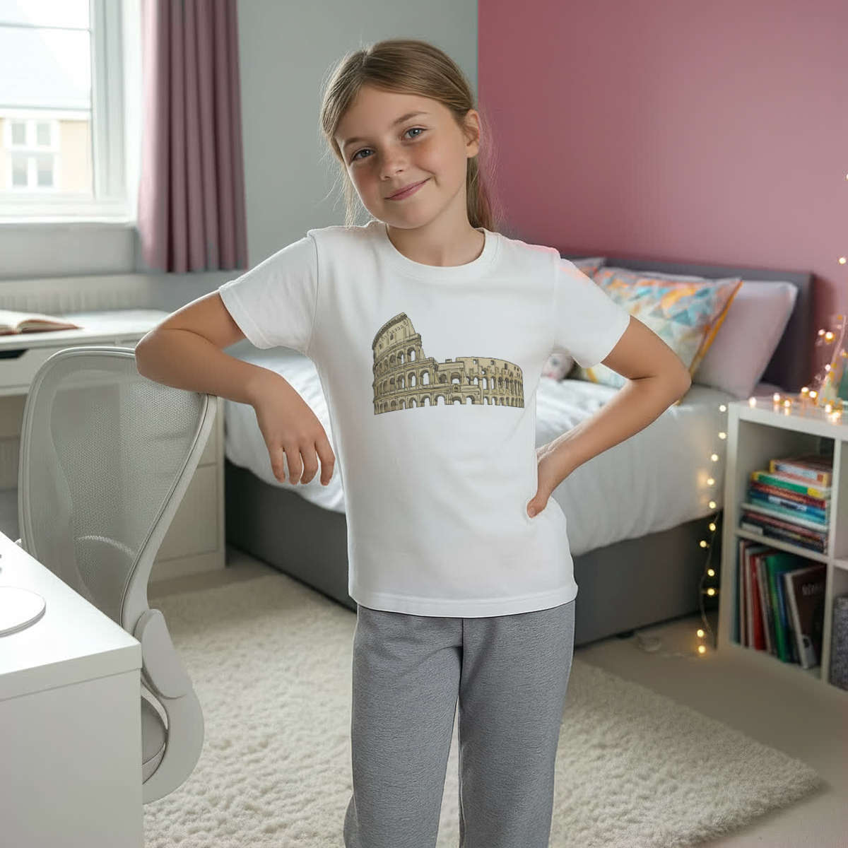 'Roman Colosseum' Kids Cotton Pyjama Set – Comfortable Children's Nightwear, Sleepwear and Loungewear - Unisex for Boys and Girls - Grey, 11-13 Years (KP00098251)
