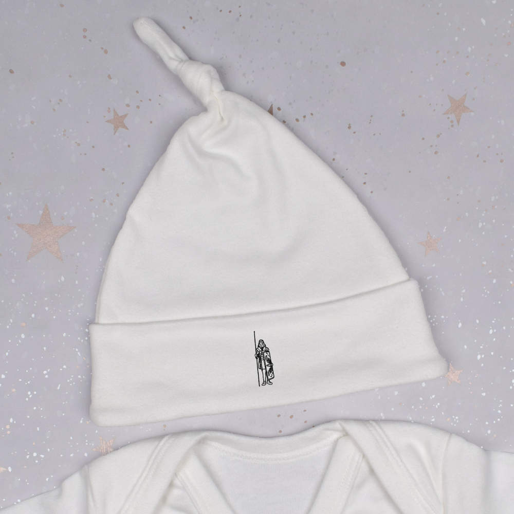 Keep little ones cosy and stylish with this super soft beanie hat. Our baby beanie hats have a knotted top and are printed on the turnover with a unique design. Made from 100% cotton, it can be machine washed and still retain its shape. This beanie hat has a stretch fit so one size fits all, with an approximate circumference of 32cm, it's ideal for babies up to 12 months old.