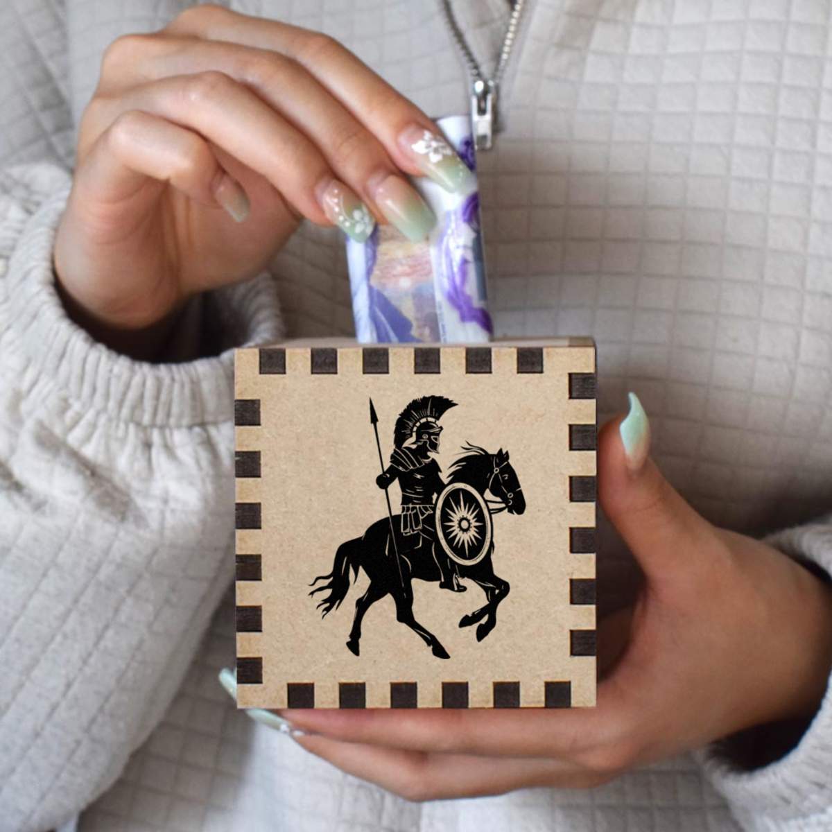 An 8.5cm wooden money box made out of the finest quality MDF and printed on all four sides with a unique design. The bottom is flat and the top has a slot for coins, the box itself is 85mm on each side, with a 35mm x 5mm coin slot, so please be sure it's suitable for you.