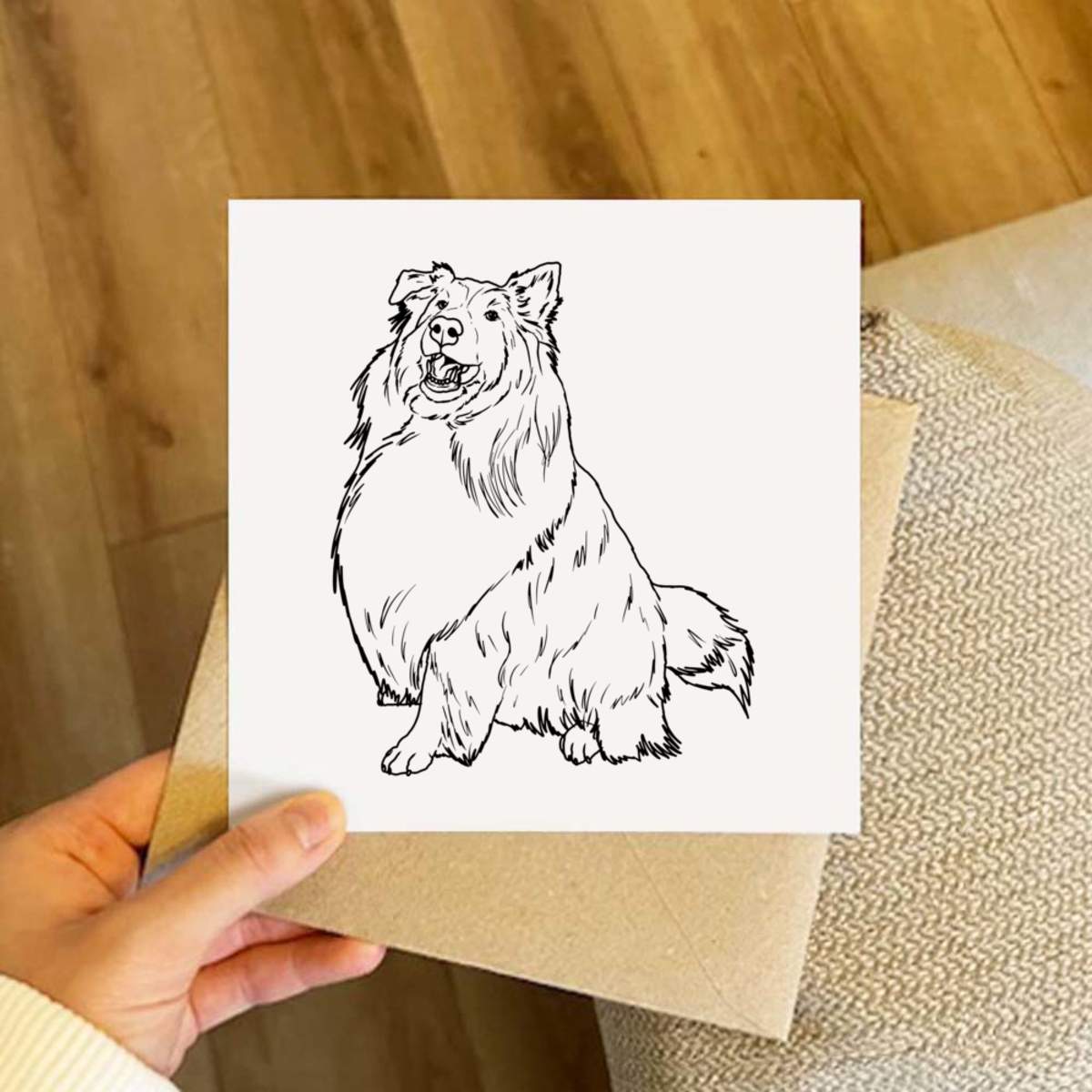 - Square greeting card supplied with a recycled brown envelope